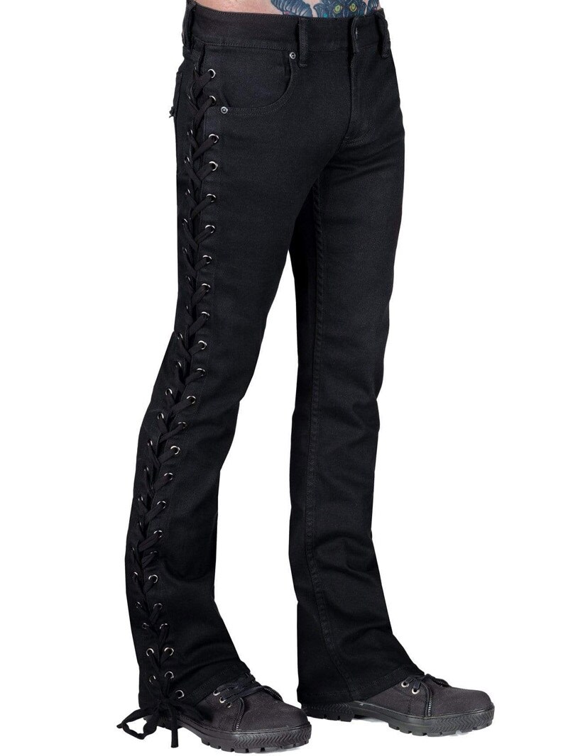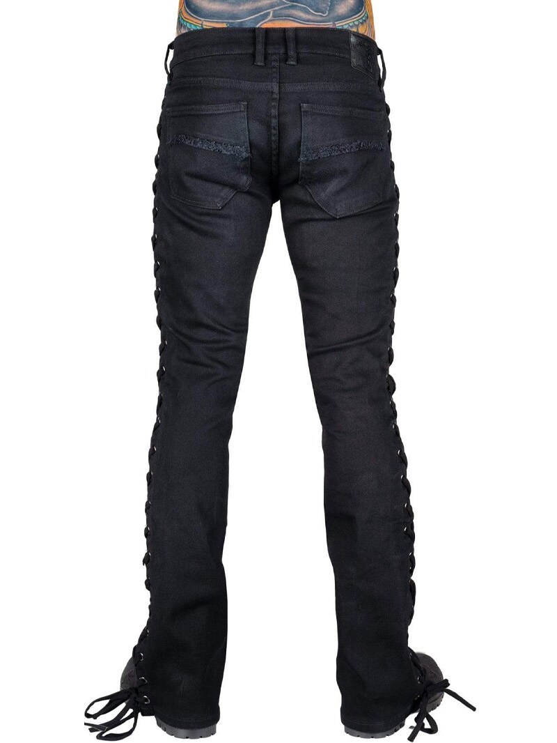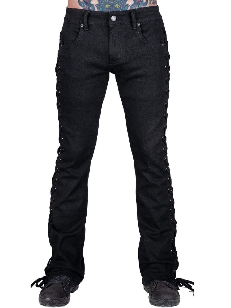 Wornstar Hellraiser jeans i sort er en kæk bootcut-model, der udmærker sig med snøring langs hele siderne.