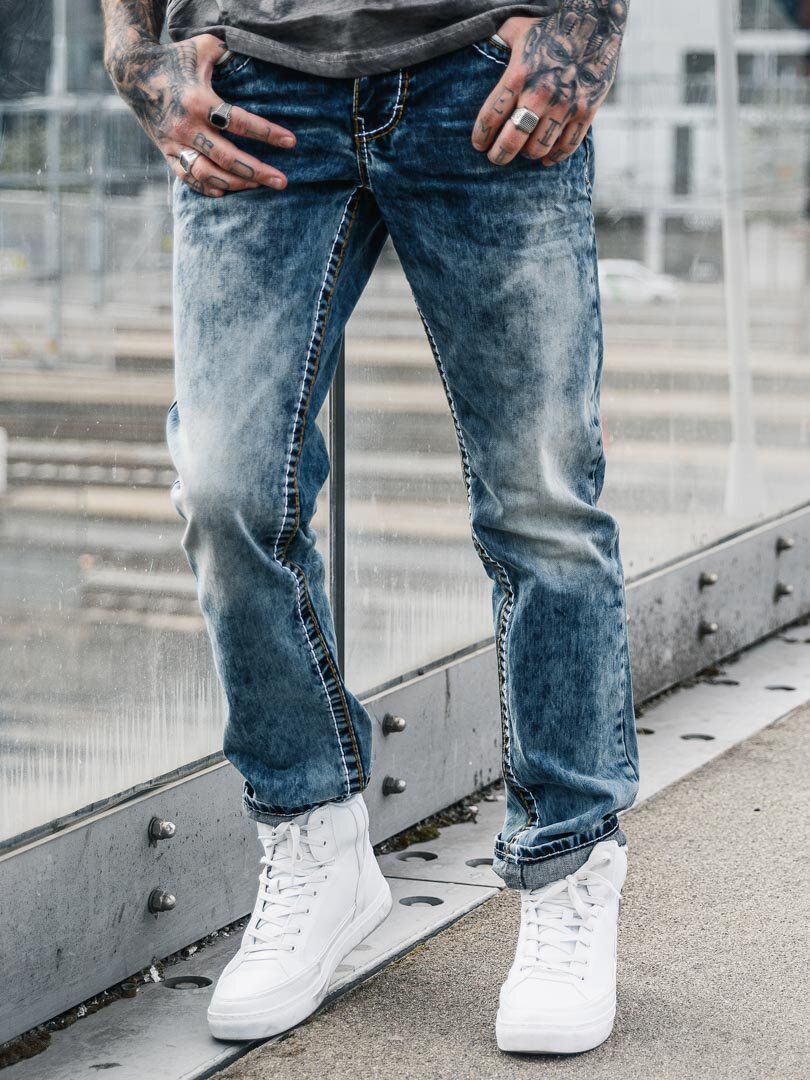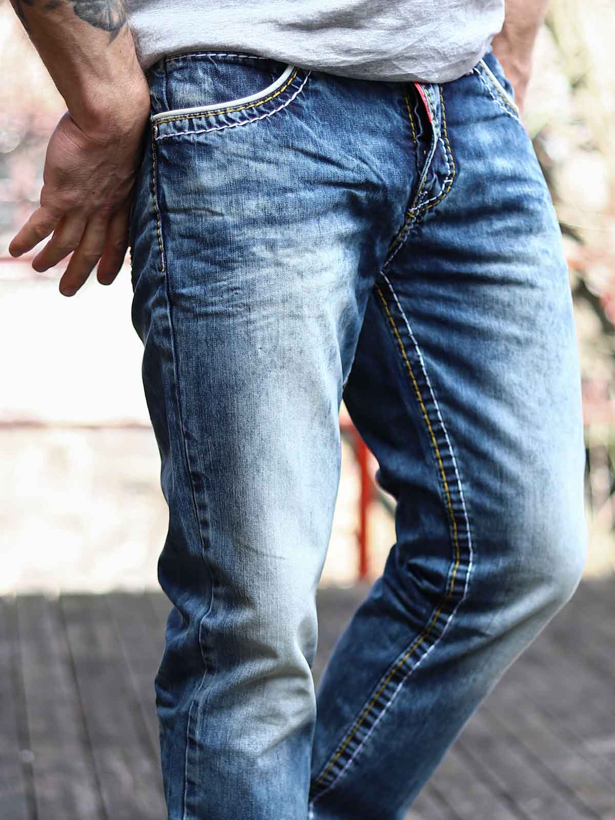 Sorte jeans i en klassisk pasform med grove sømme i kontrastfarver. De har fire lommer fortil og to lommer bagpå. Det er et par flotte bukser der passer til det meste!