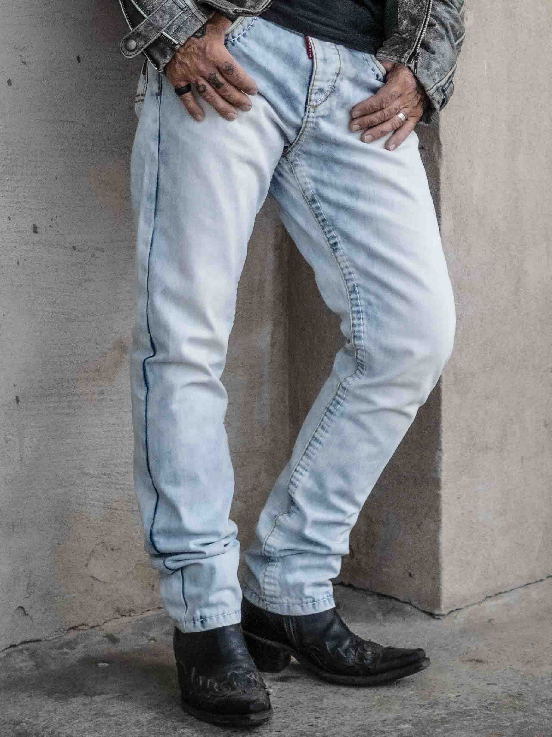 Stenvaskede jeans i en klassisk pasform med grove sømme i kontrastfarver. De har fire lommer fortil og to lommer bagpå. Det er et par flotte bukser der passer til det meste!