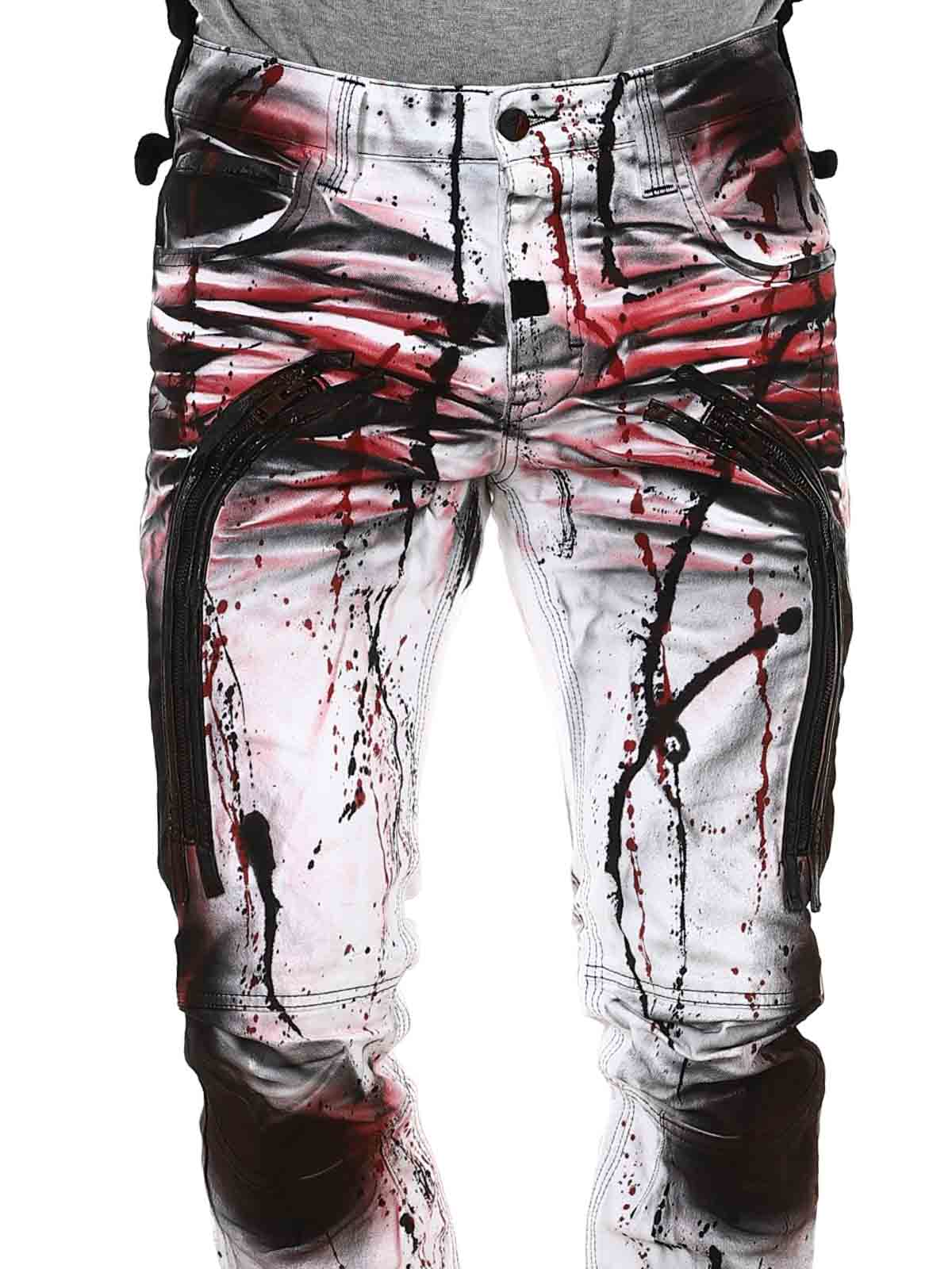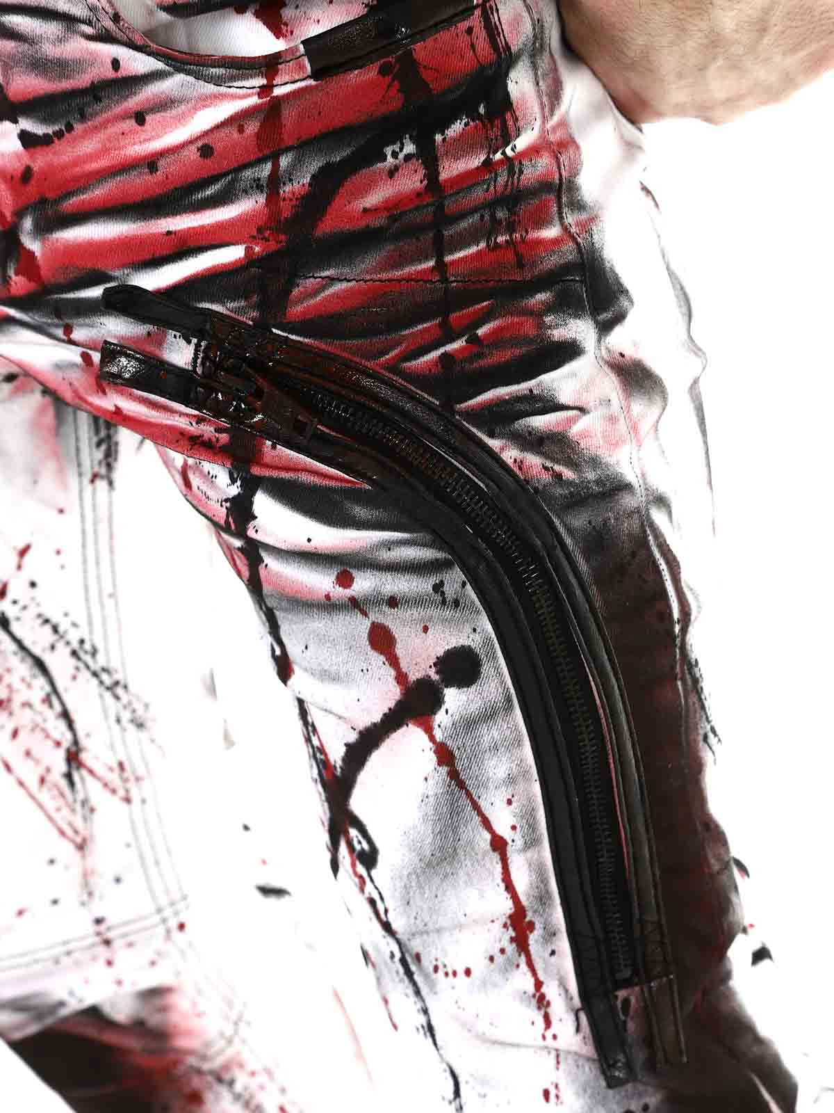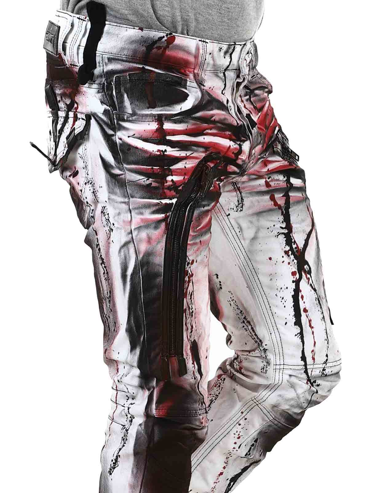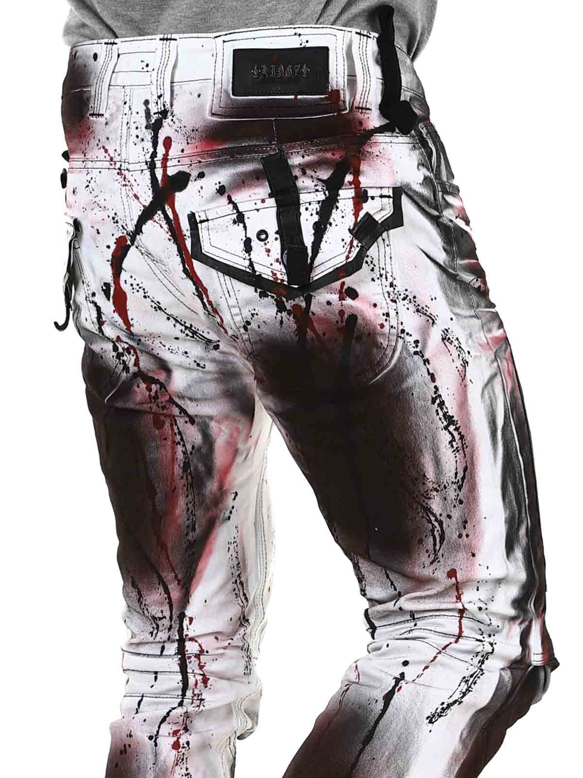 Hvide bukser designet med farvedetaljer, der giver en cool effekt. De har tre åbne forlommer, to lukkede baglommer samt knapper i gylpen. Designet med lynlåse og remme i skindimitation. Perfekte til dig, der ikke vil blende ind – men skille dig ud med selvtillid.