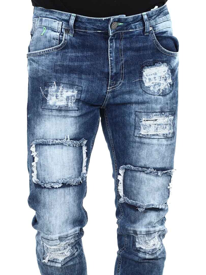 Bukser i denim med moderigtige slidte dele og et cool brugt look. Dette er en 5-lommersmodel med en slim fit-pasform der giver sidder flot ned langs benene, og som samtidige er behagelige takket være det elastiske materiale. Disse bukser er perfekte til dig med attitude!