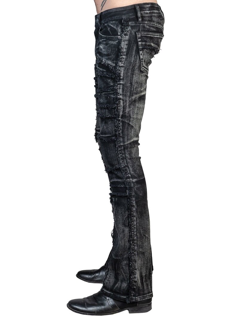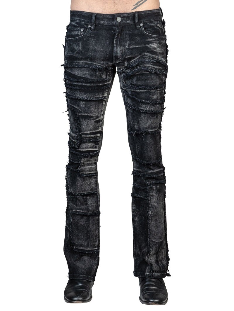 Wornstar Remnant jeans i slidt sort finish er en rocka bootcut-model med unike håndlavede detaljer.