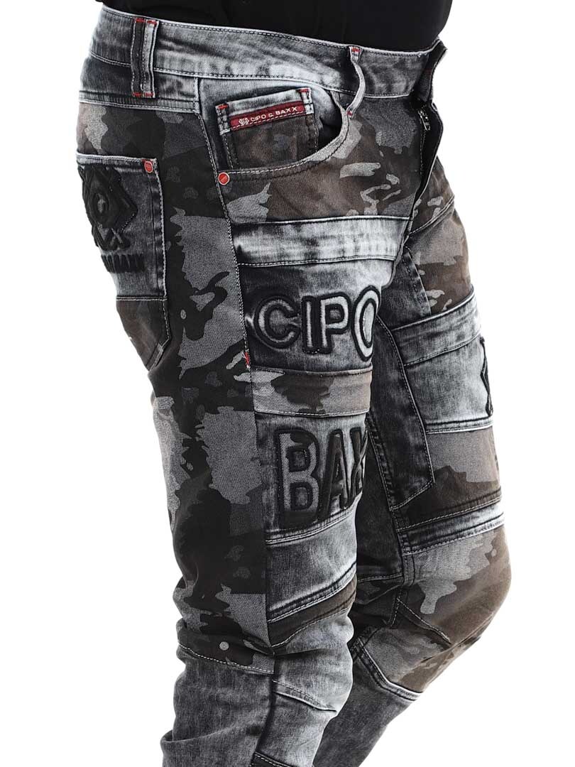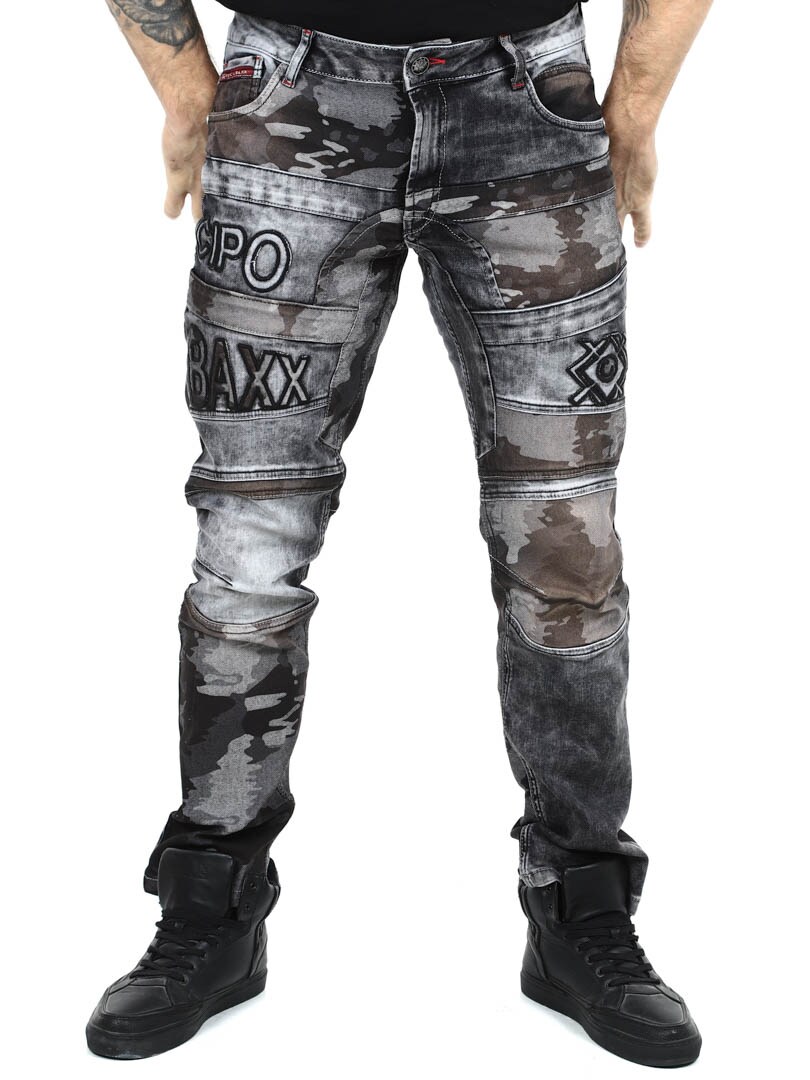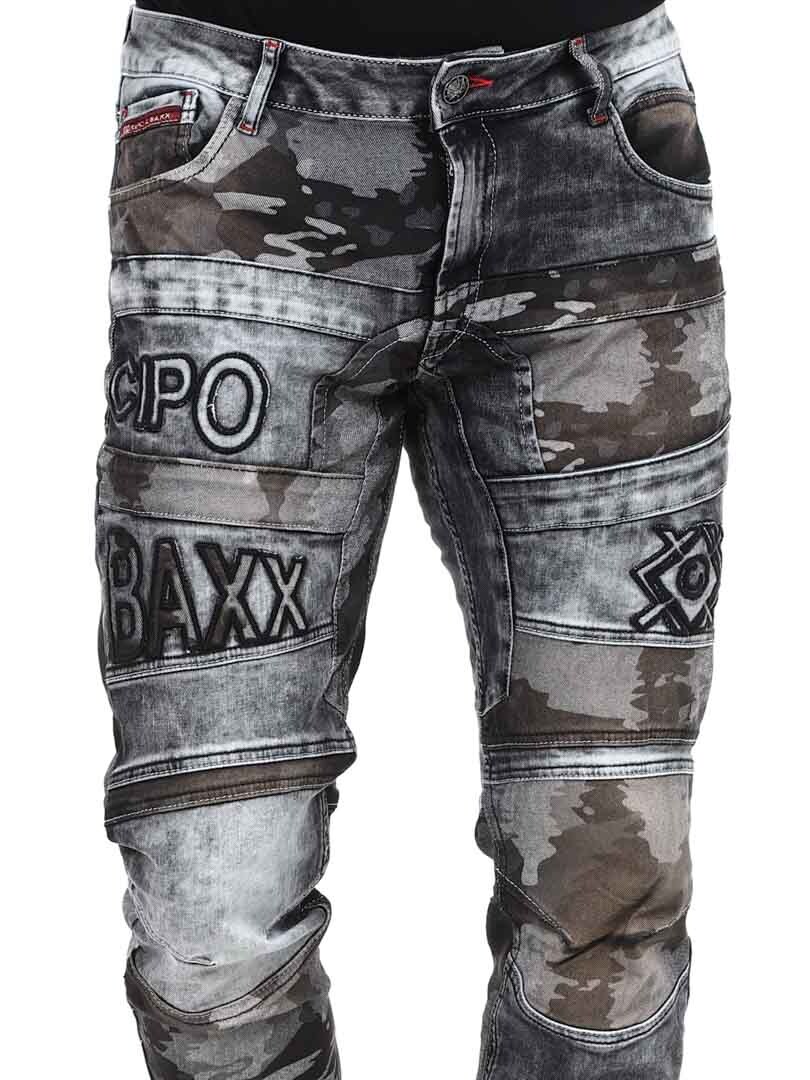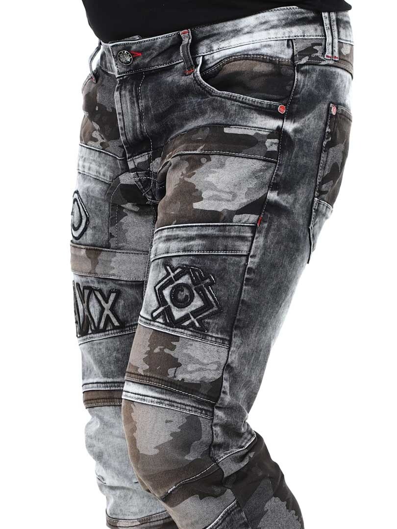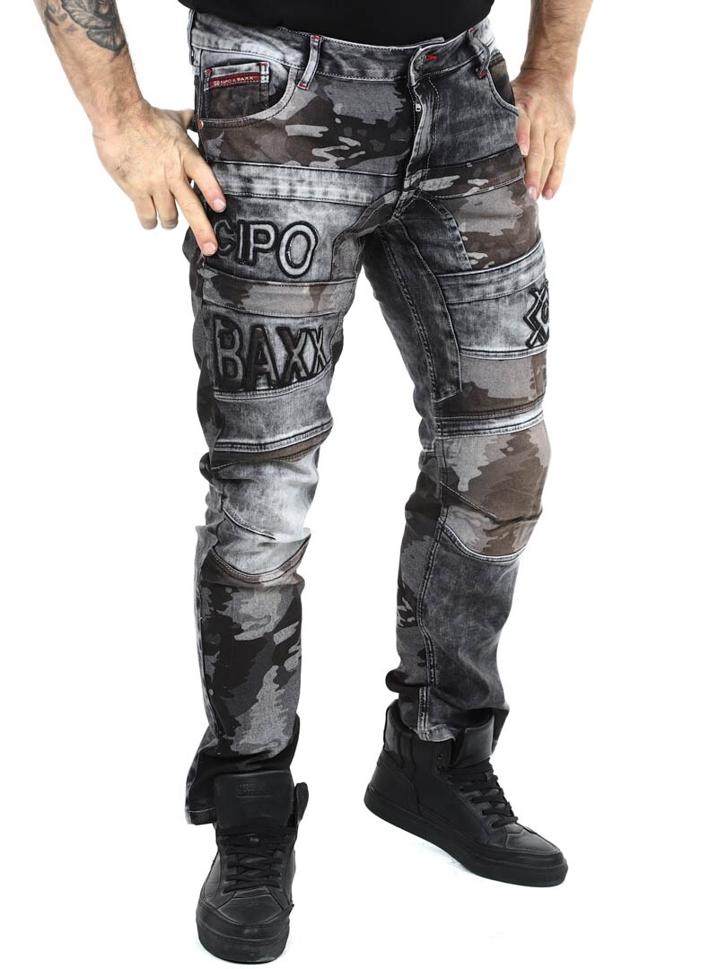 Stenvaskede bukser med sløringsmønstrede dele. Dette er en 5-lommers model med elasticitet og en klassisk pasform. Der findes desuden et fastsyet logo fortil og bagpå.