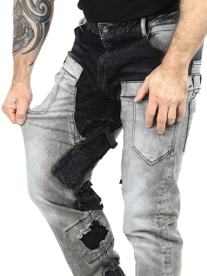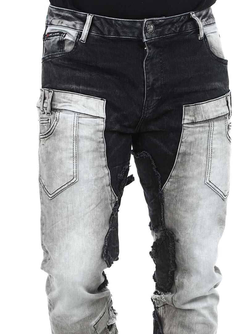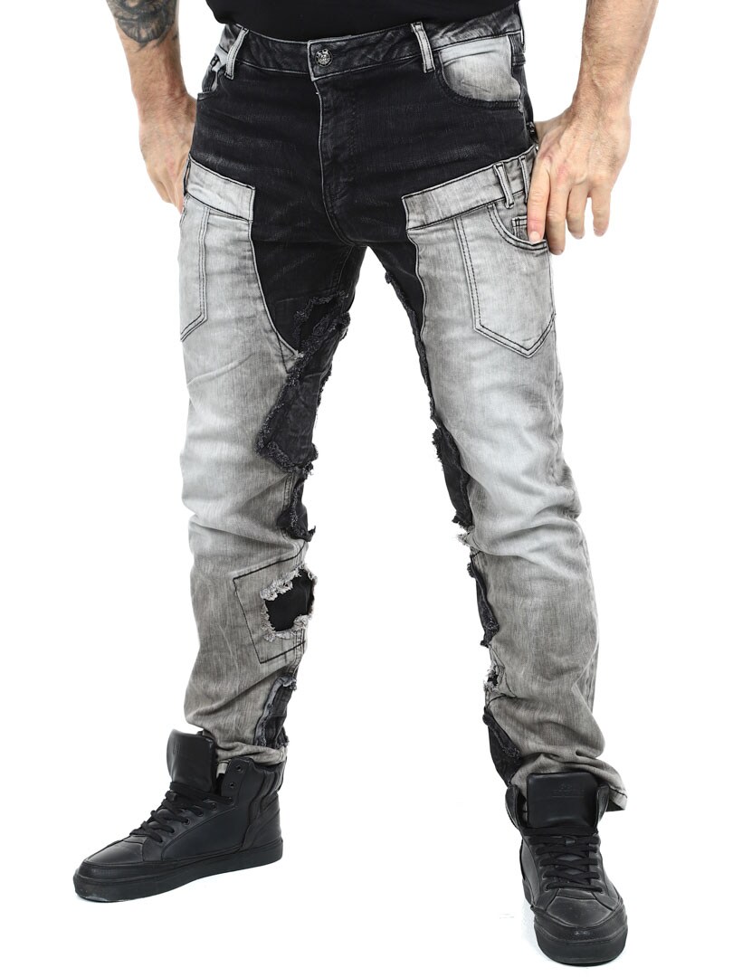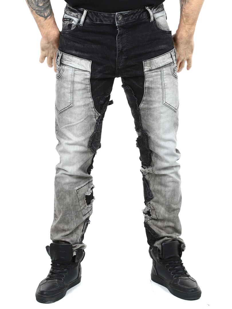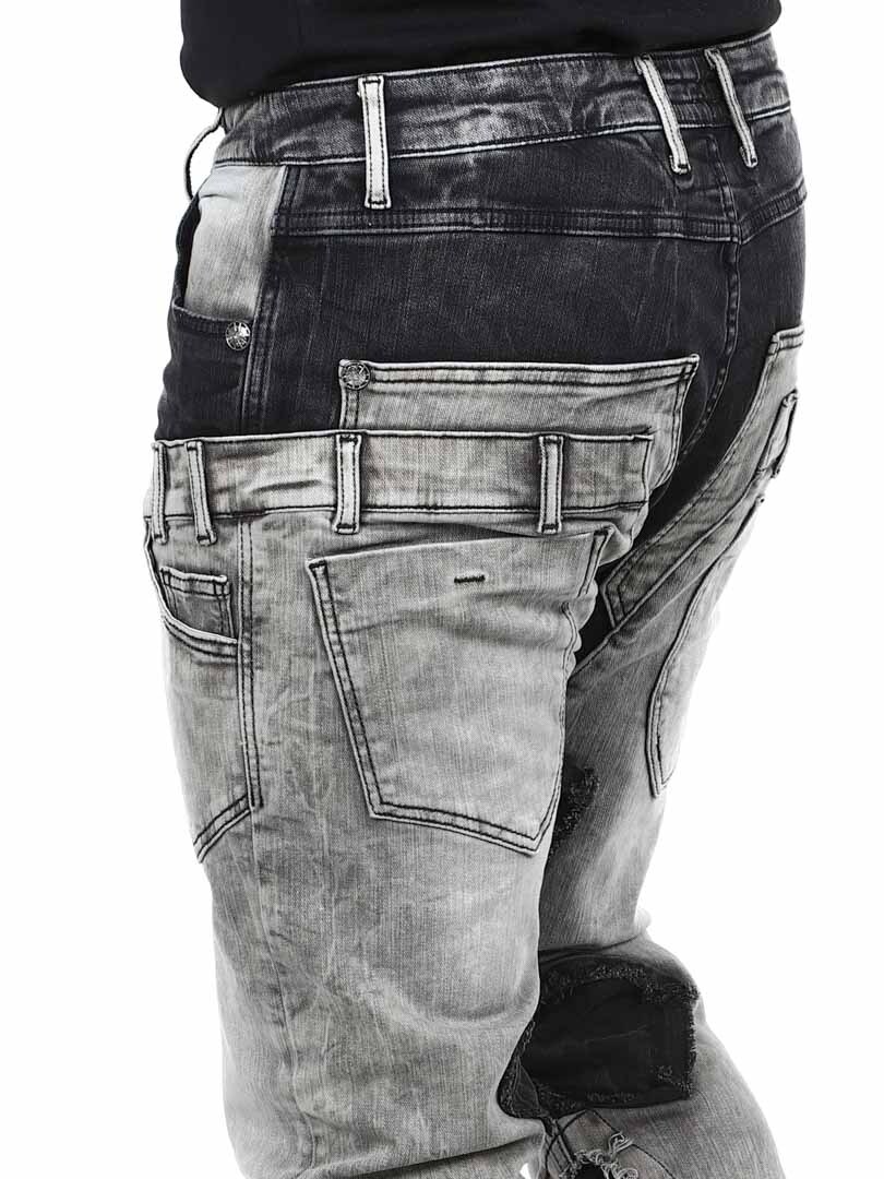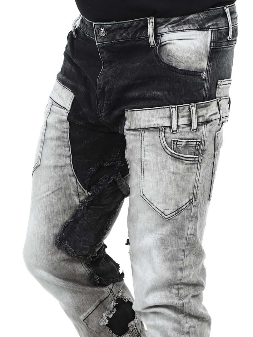 Regular fit jeans med et dobbelt denim udseende samt flere lommer. Materialet er strækbart og behageligt, hvilket giver en god pasform uden at gå på kompromis med bevægelsesfriheden. Perfekt at bære sammen med sneakers til en afslappet streetwear-stil eller med støvler for et mere rock'n'roll udseende.