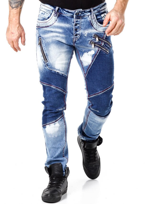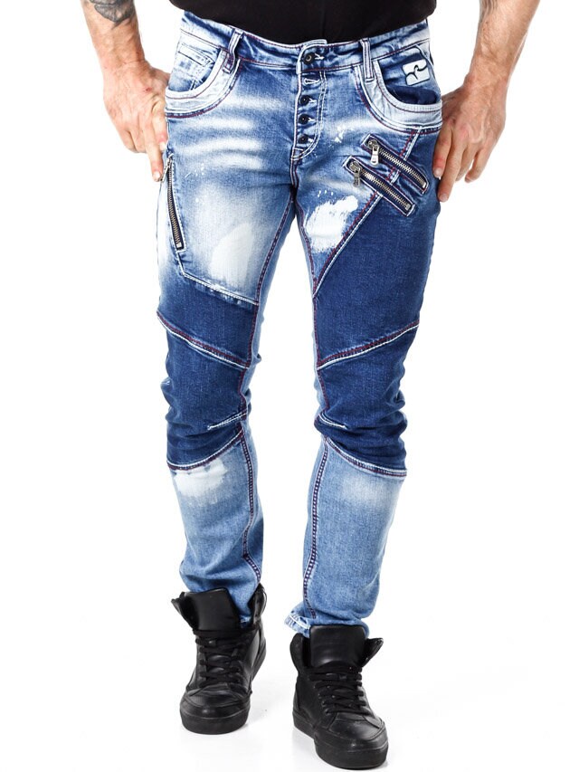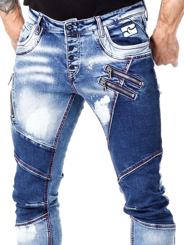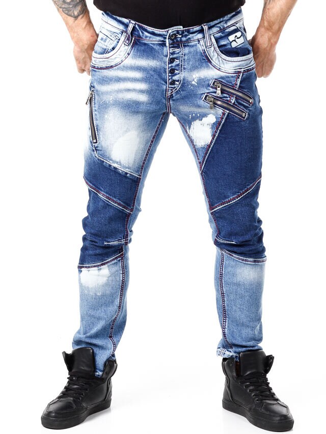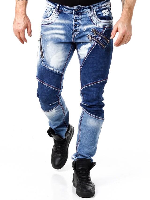 Frække jeans der kommer fra en ekstraordinærvask. De er detajerede med markerede sømme samt lynlåse. Dette er en slim fit-model med fem klassiske lommer. De er fremstillet i en blanding af bomuld og elastan, der er med til at give dem den bedste komfort.