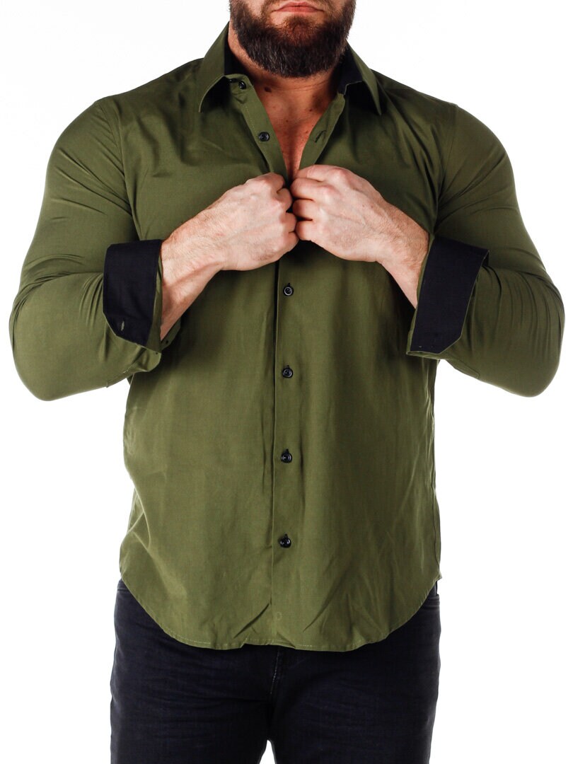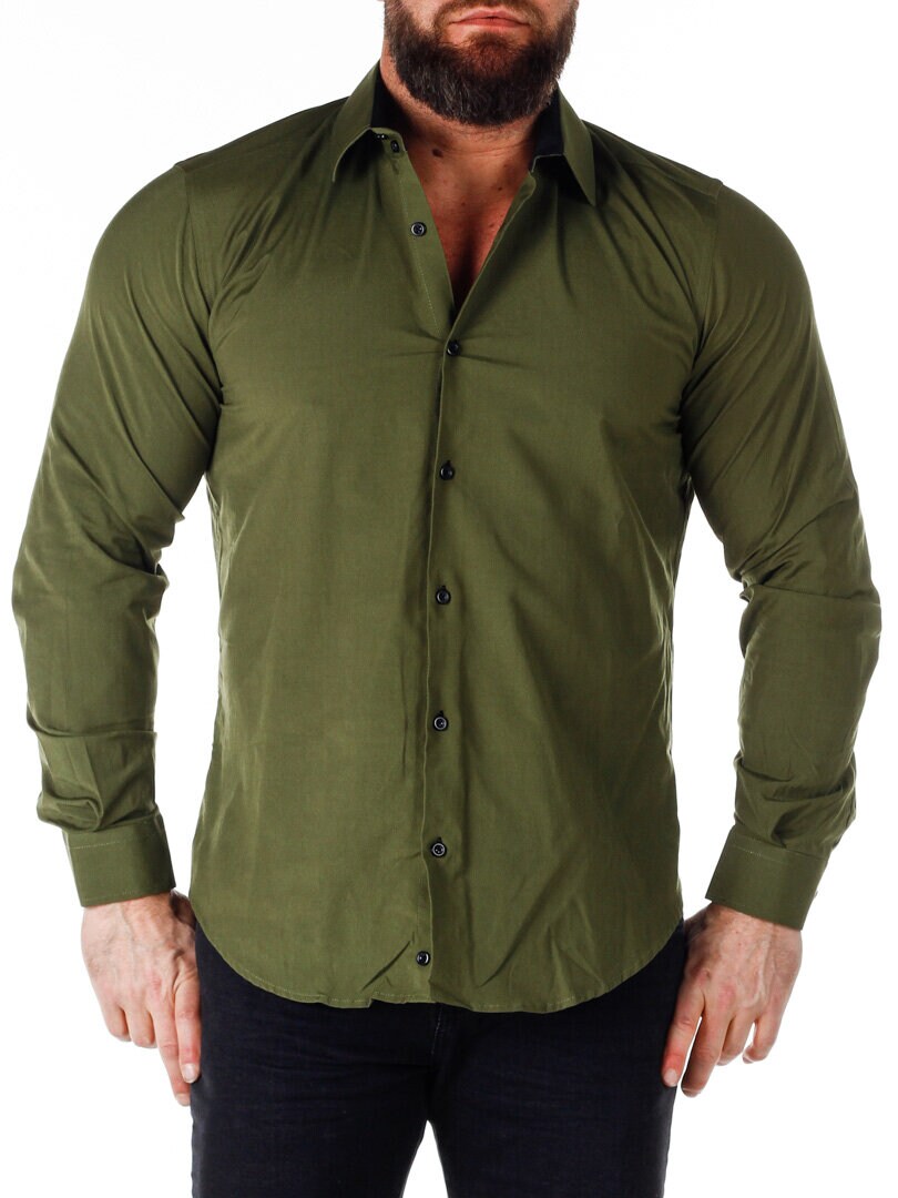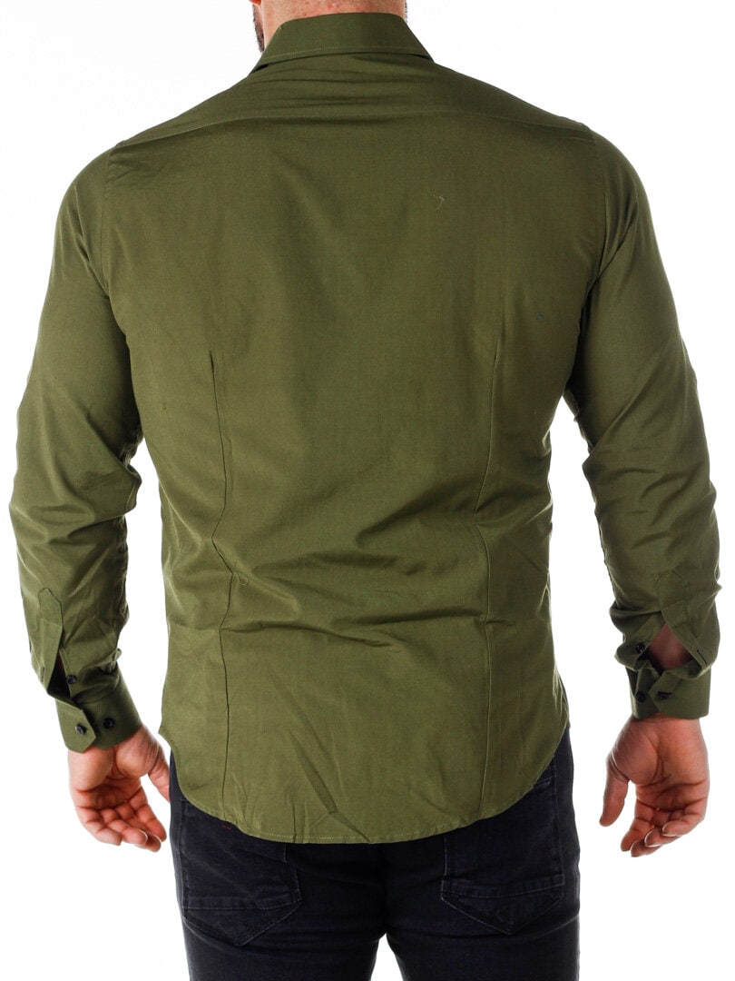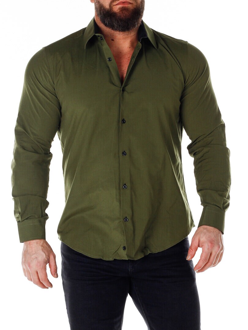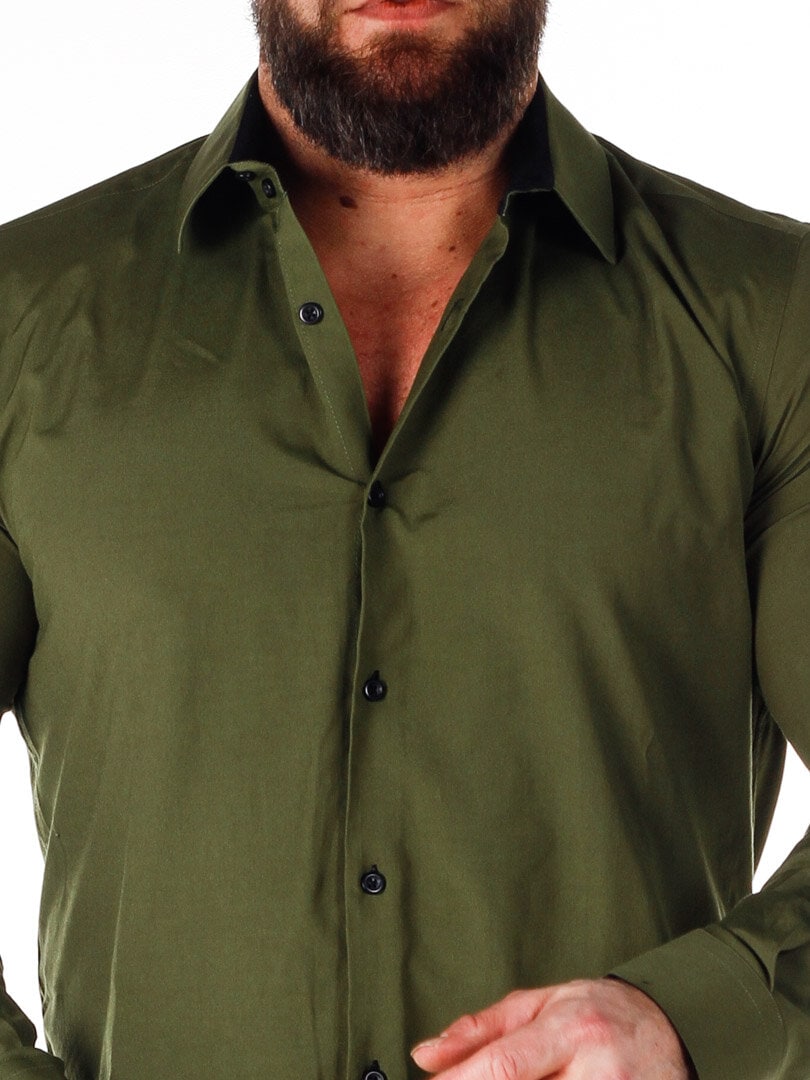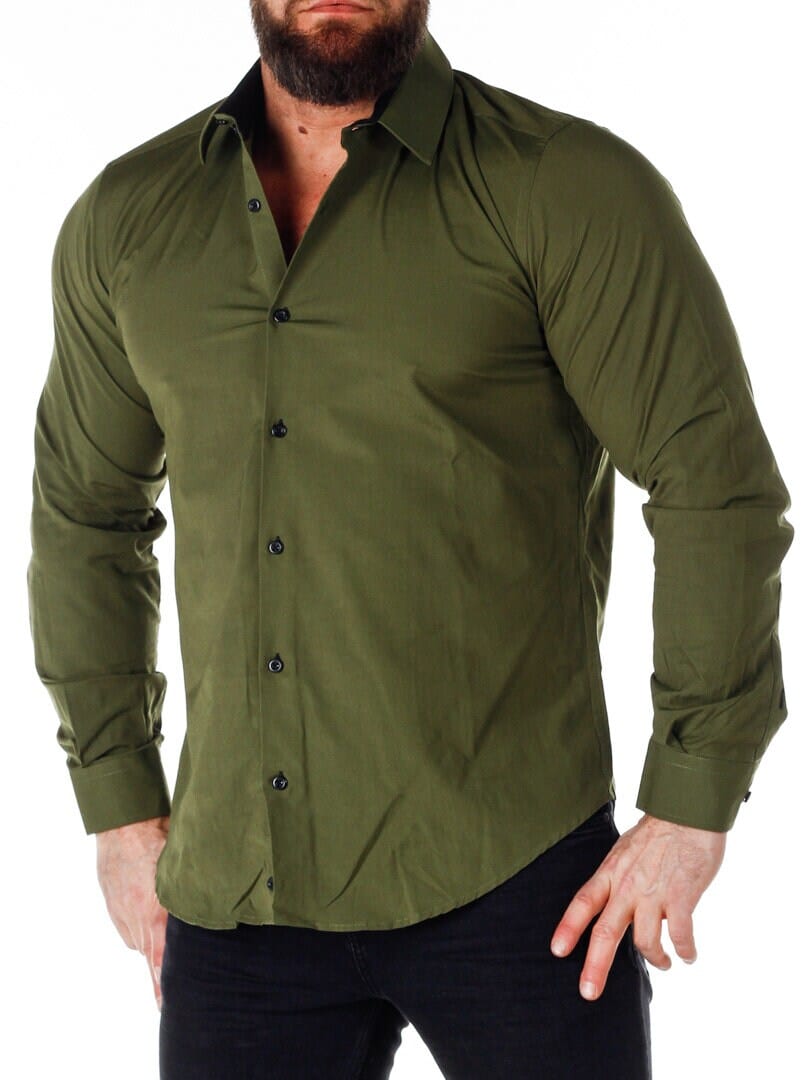 Bomuldsskjorte i en bekvem model, som er noget stretchig. Grøn base med knapper, indvendig krave og enderne af ærmerne i en kontrastfarve. En smallere model med afrundet linning forneden og med forstærket krave, som holder formen. Findes i flere farver!