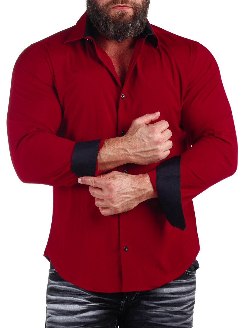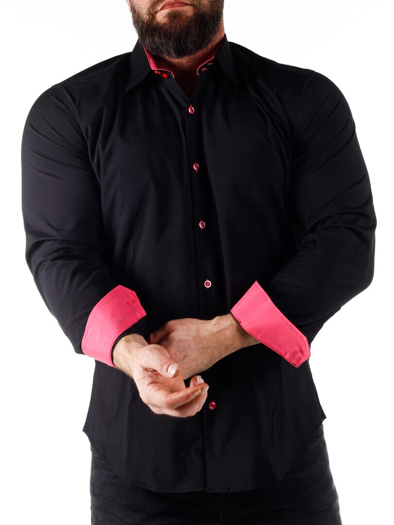 Bomuldsskjorte i en bekvem model, som er noget stretchig. Sort base med knapper, indvendig krave og enderne af ærmerne i en kontrastfarve. En smallere model med afrundet linning forneden og med forstærket krave, som holder formen. Findes i flere farver!