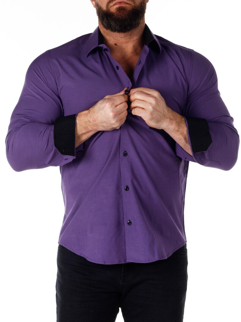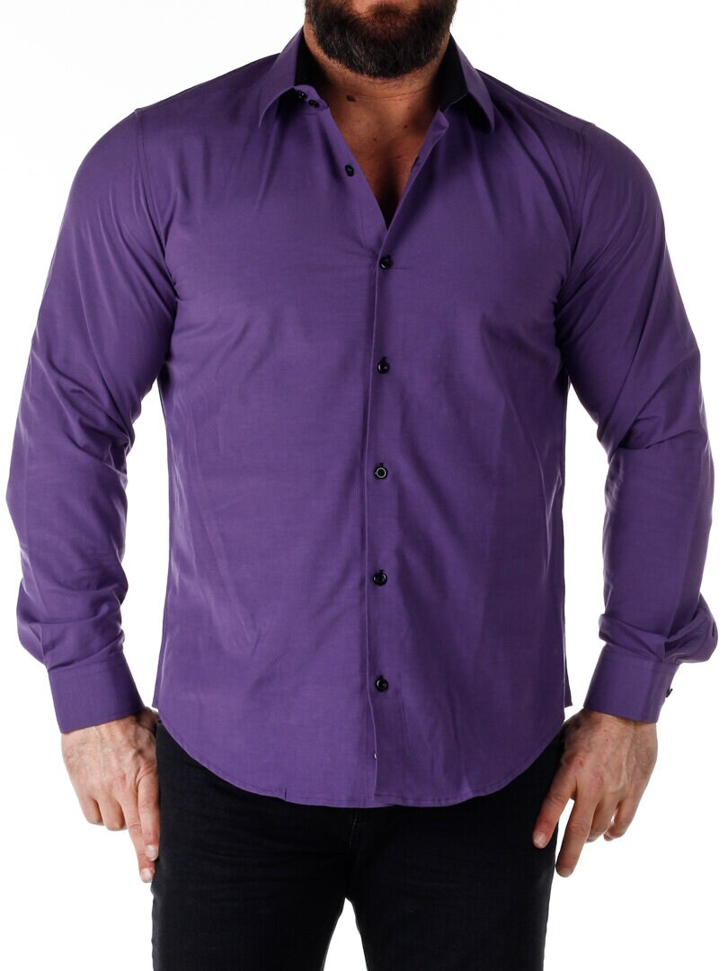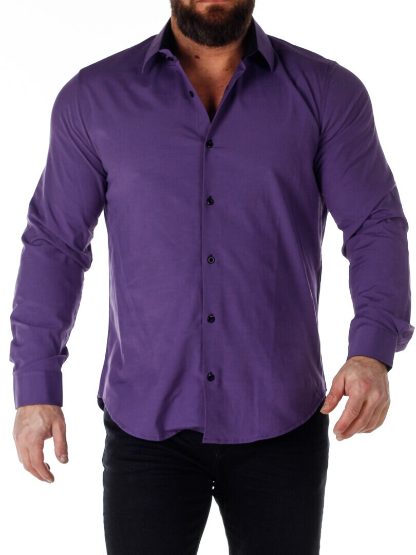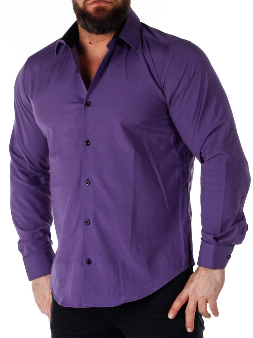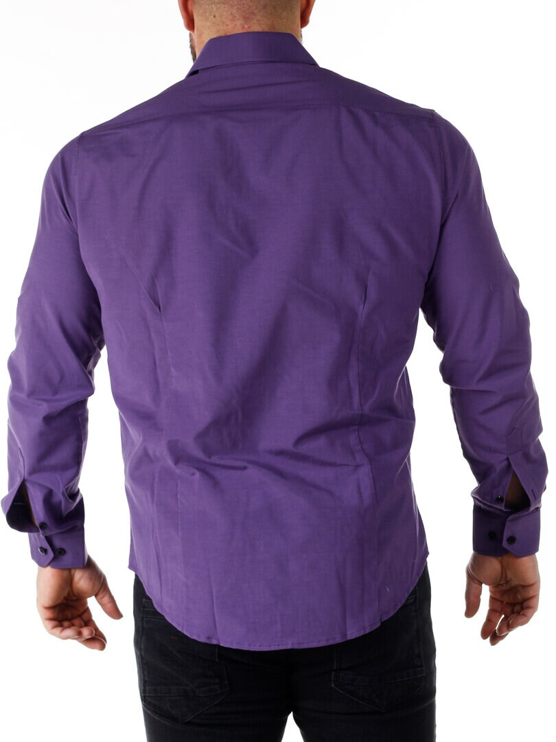 Bomuldsskjorte i en bekvem model, som er noget stretchig. Lilla base med knapper, indvendig krave og enderne af ærmerne i en kontrastfarve. En smallere model med afrundet linning forneden og med forstærket krave, som holder formen. Findes i flere farver!