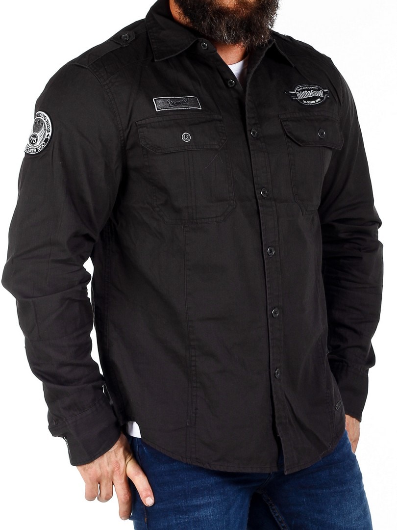 Retroinspireret skjorte i en lige model med to lommer på brystet, som lukkes ved hjælp af knapper. Skjorten er detaljeret med stofmærker på ærmerne og brystet, og den har en afrundet linning forneden.