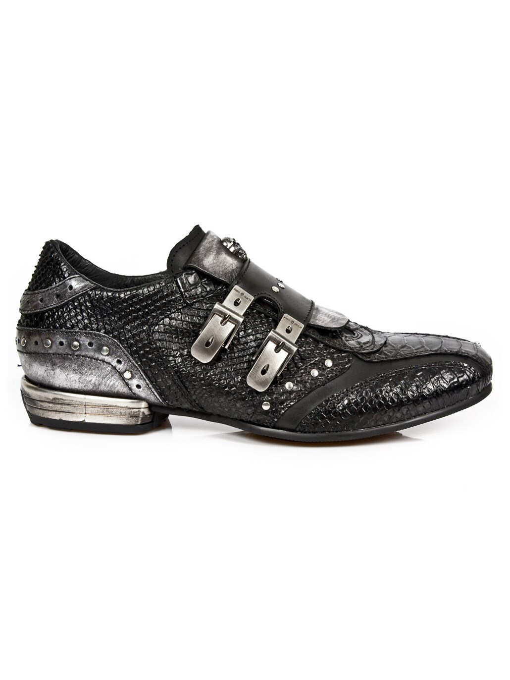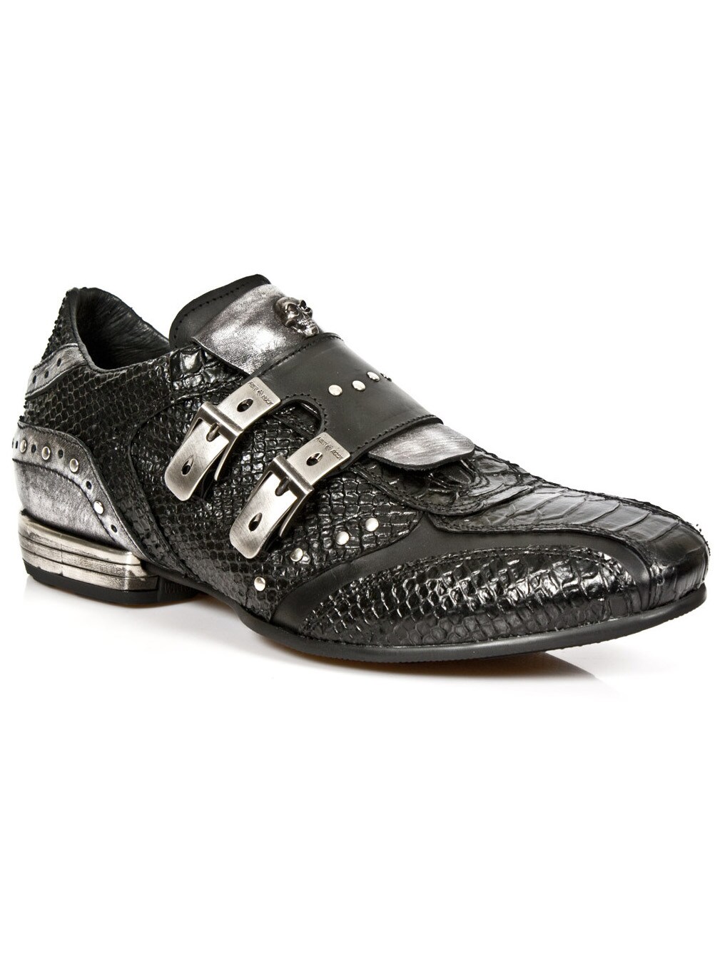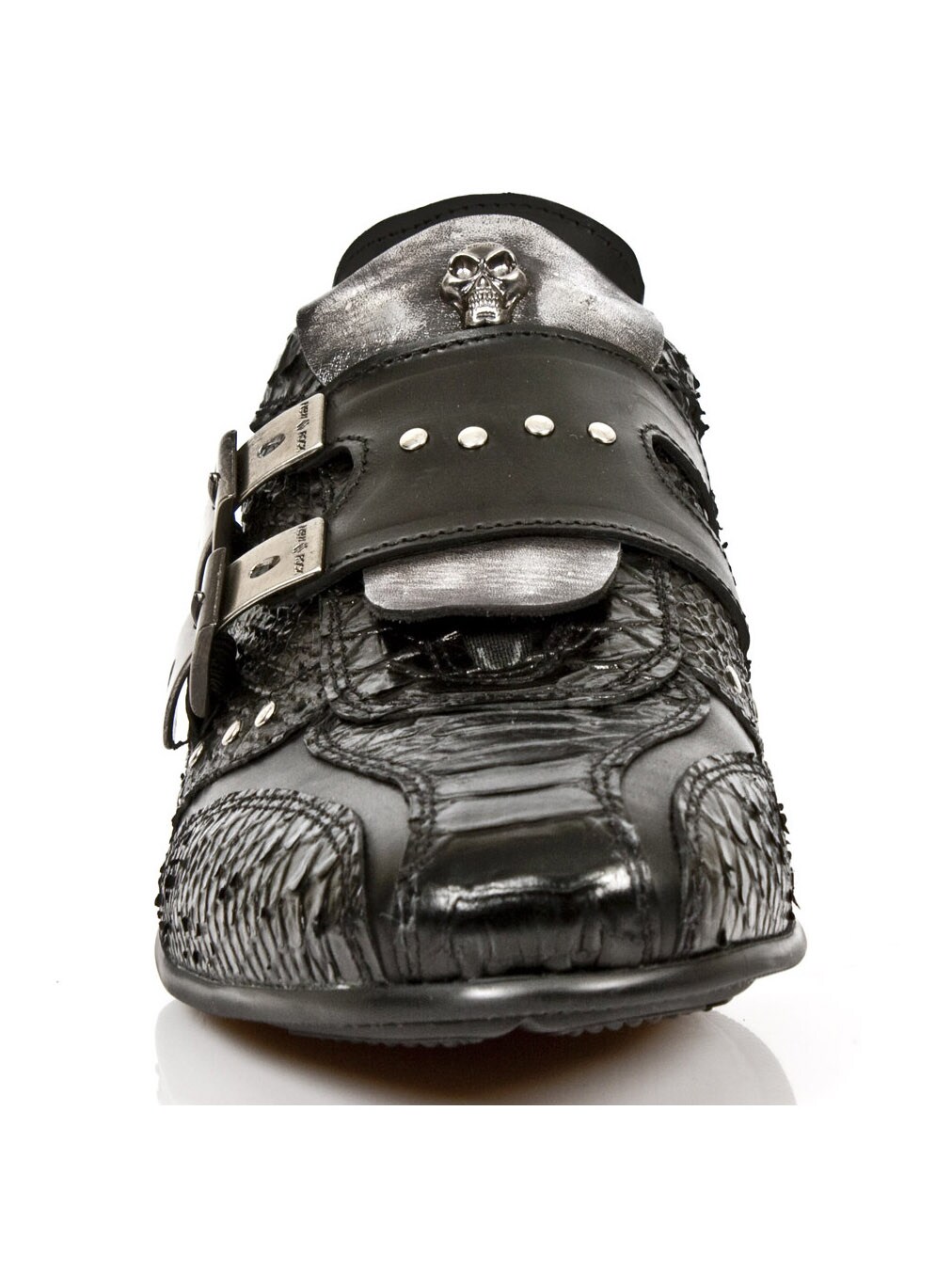 Sorte sko i ægte læder i et mønster og med et lavt skaft. De er detaljerede med grå partier, nitter og en rem i læder, hvor der sidder to spænder i metal på. Fortil på skoene findes en lap med dødningehoveder. Denne sko findes i et begrænset oplag!