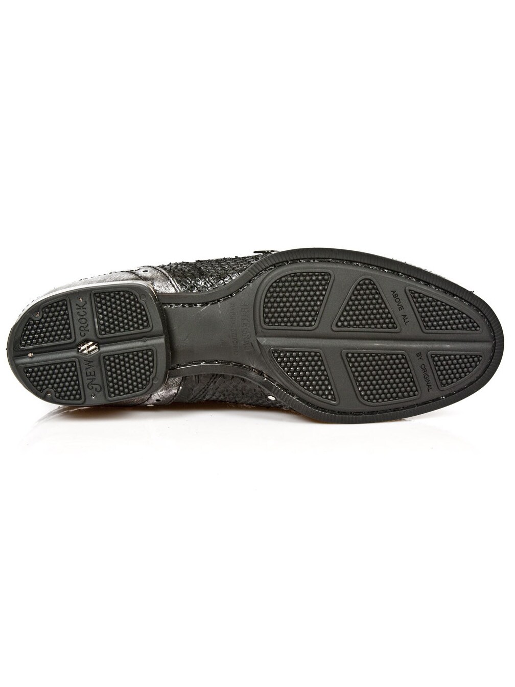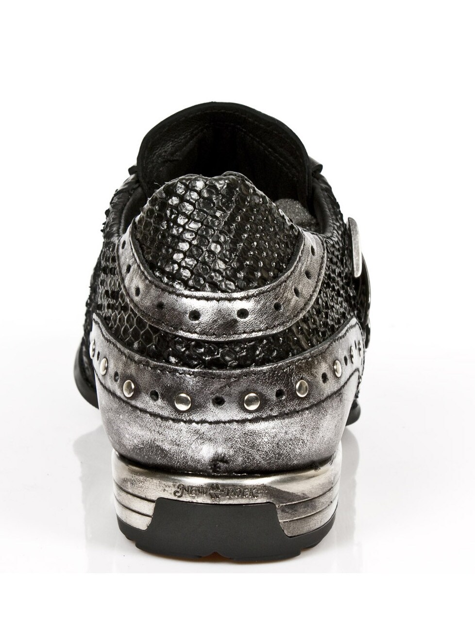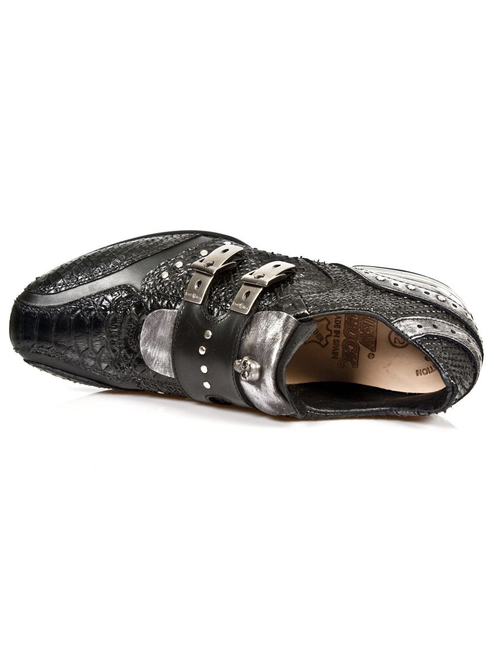 Sorte sko i ægte læder i et mønster og med et lavt skaft. De er detaljerede med grå partier, nitter og en rem i læder, hvor der sidder to spænder i metal på. Fortil på skoene findes en lap med dødningehoveder. Denne sko findes i et begrænset oplag!