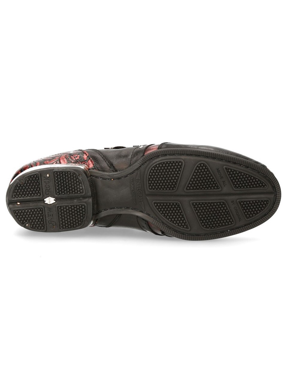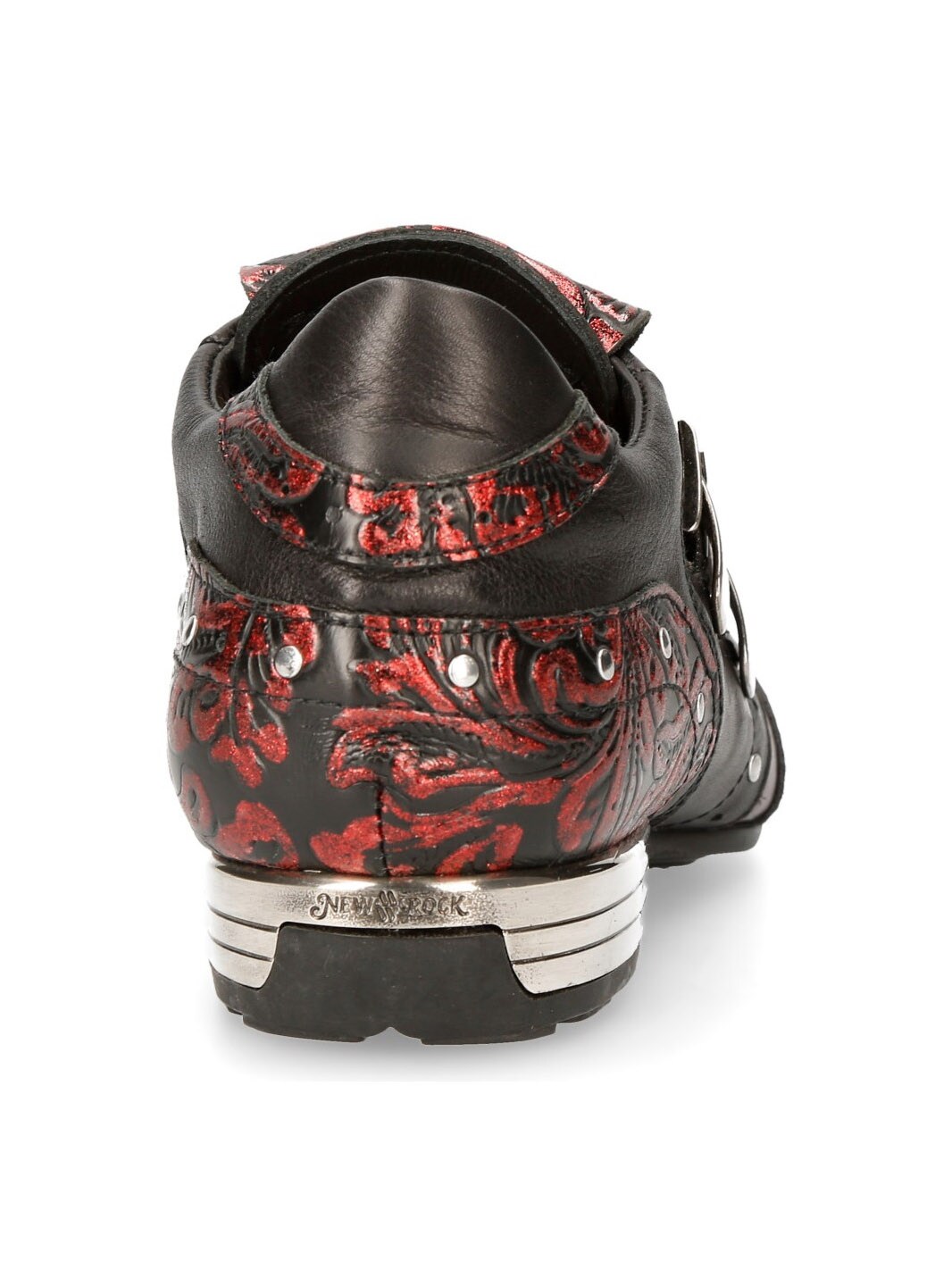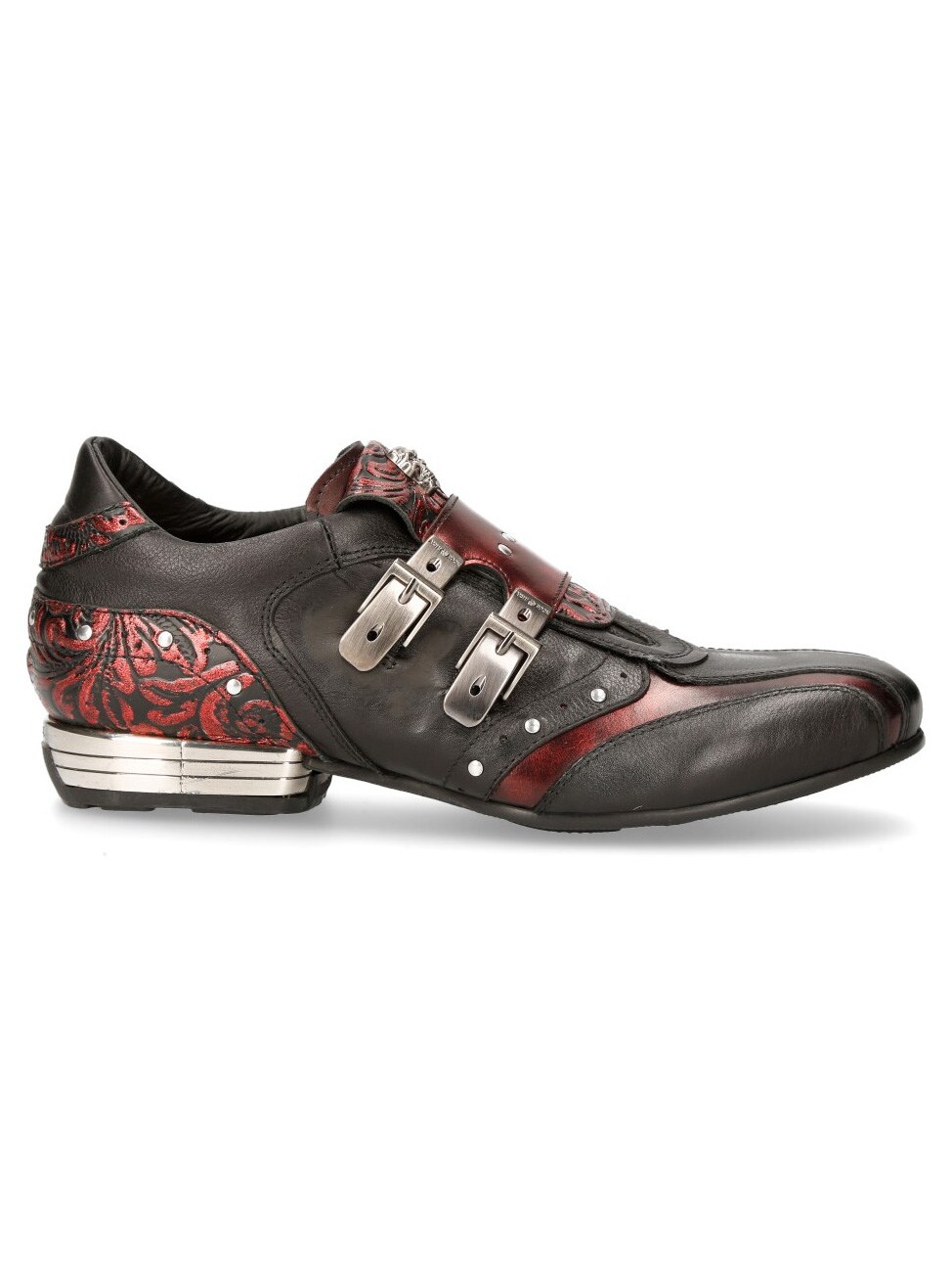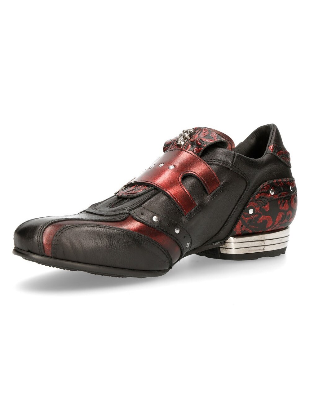Sorte sko i ægte læder i et mønster og med et lavt skaft. De er detaljerede med røde partier, nitter og en rem i læder, hvor der sidder to spænder i metal på. Fortil på skoene findes en lap med dødningehoveder. Denne sko findes i et begrænset oplag!