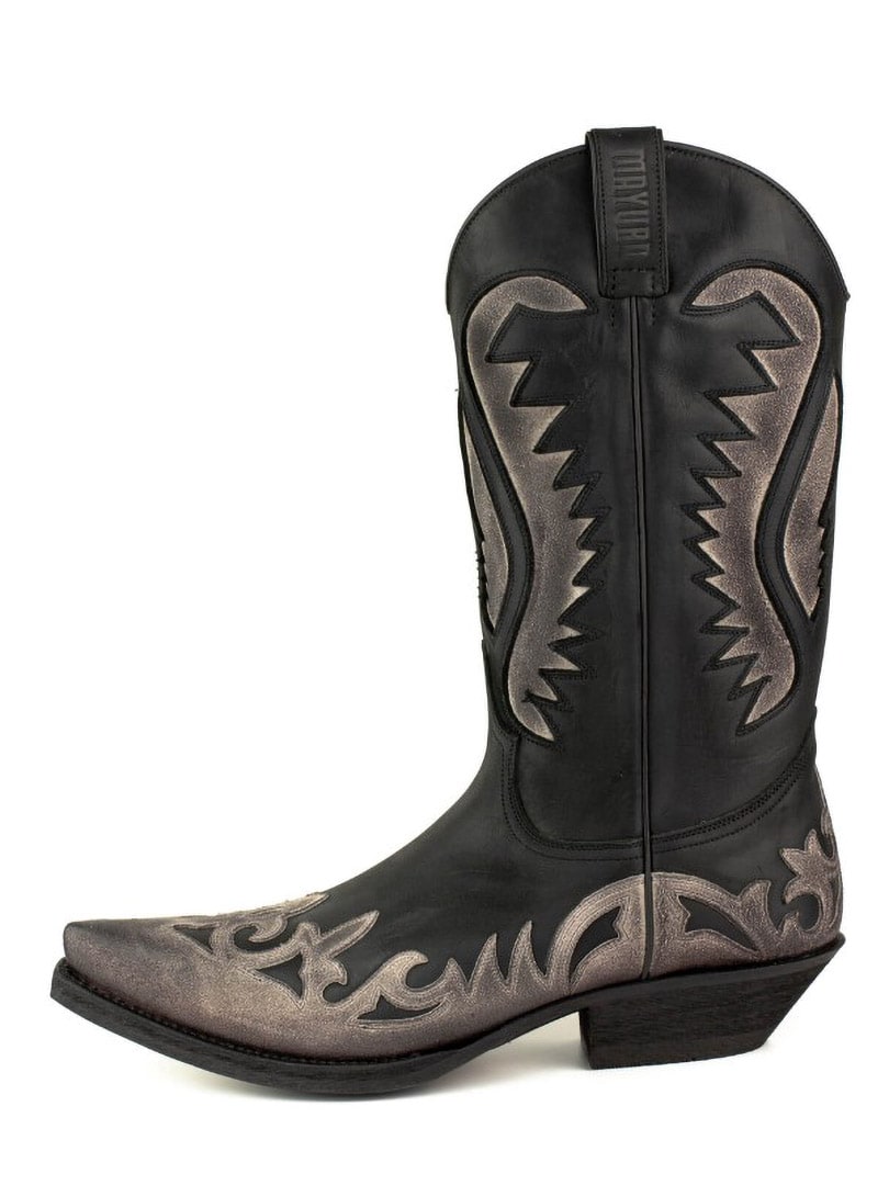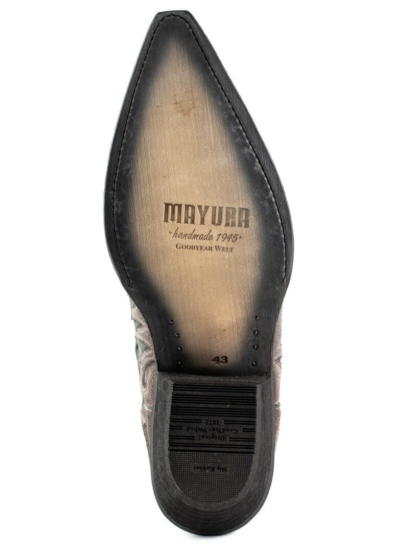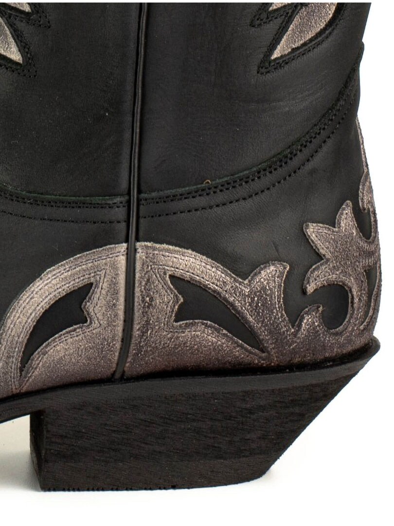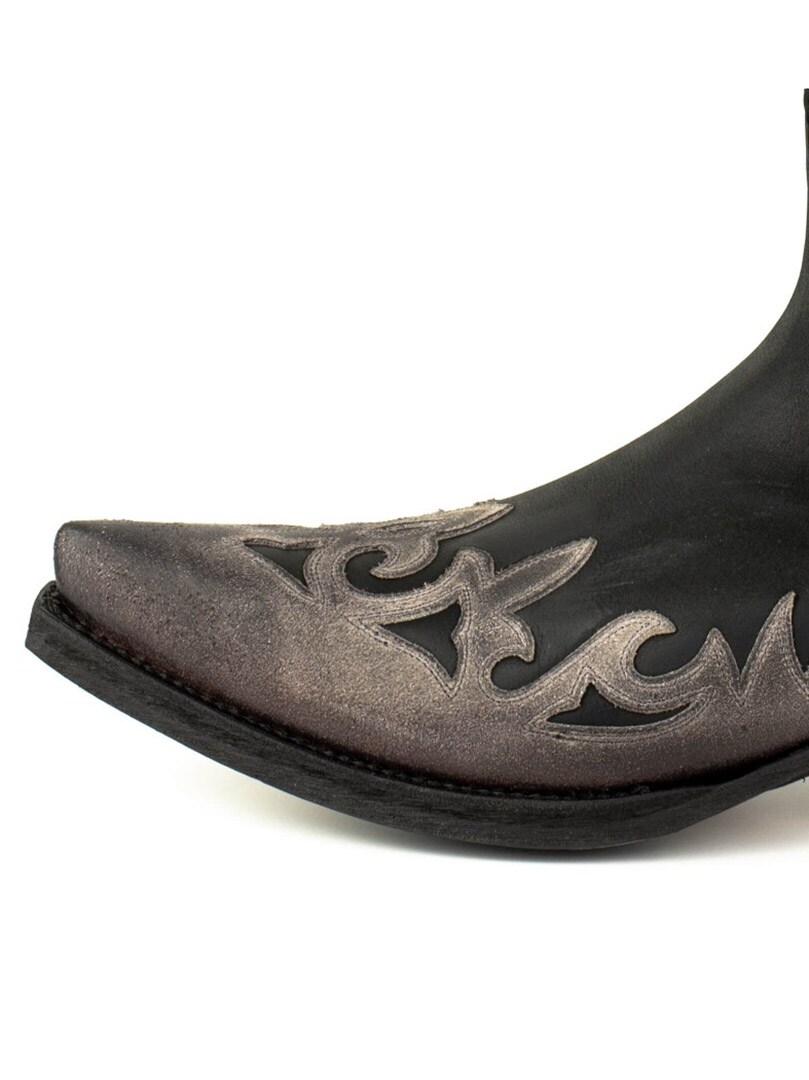 Disse boots er fremstillet af ægte, alderen kolæder, som er håndolieret for at skabe den unikke farvekontrast og autentiske vintagefølelse. De er udsmykket med klassiske westernbroderier og har en elegant, spids tåform. Den spanske kalvelædersål og Goodyear Welt-konstruktionen sikrer høj holdbarhed, stabilitet og førsteklasses komfort.