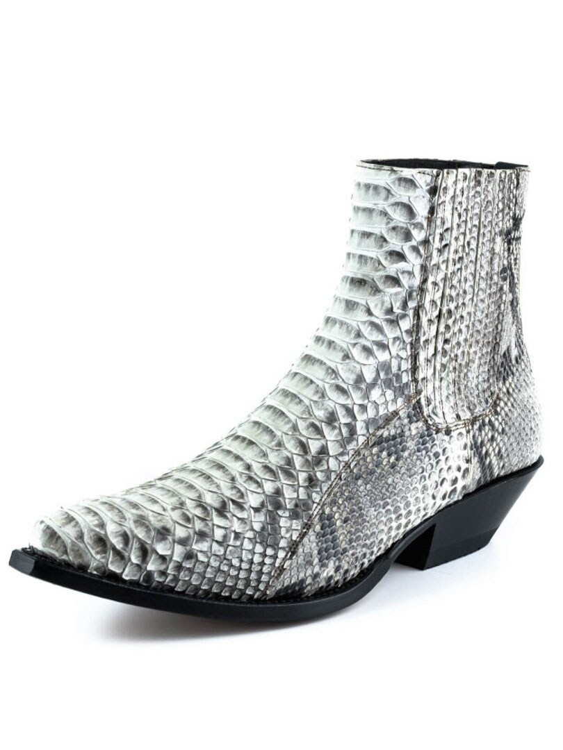 Mayura 2575 Harrier M-50 ankelstøvler i hvidt pythonlæder er elegante, håndlavede støvler med en eksklusiv profil.