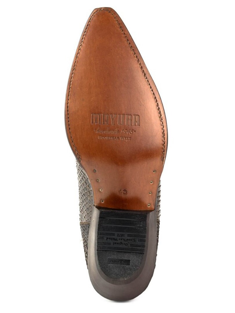 Disse sofistikerede støvler er fremstillet af ægte pythonlæder og foret med blødt kalveskind for en behagelig følelse ved hvert skridt. Designet er udformet til at give foden og anklen en slank silhuet, hvilket gør dem til det perfekte valg at bære til smalle bukser. Takket være de elastiske sidepaneler er de nemme at tage af og på, samtidig med at Goodyear-konstruktionen med lædersål garanterer overlegen holdbarhed. Dette er skoen for den, der søger en kombination af luksuriøse materialer og førsteklasses håndværk.