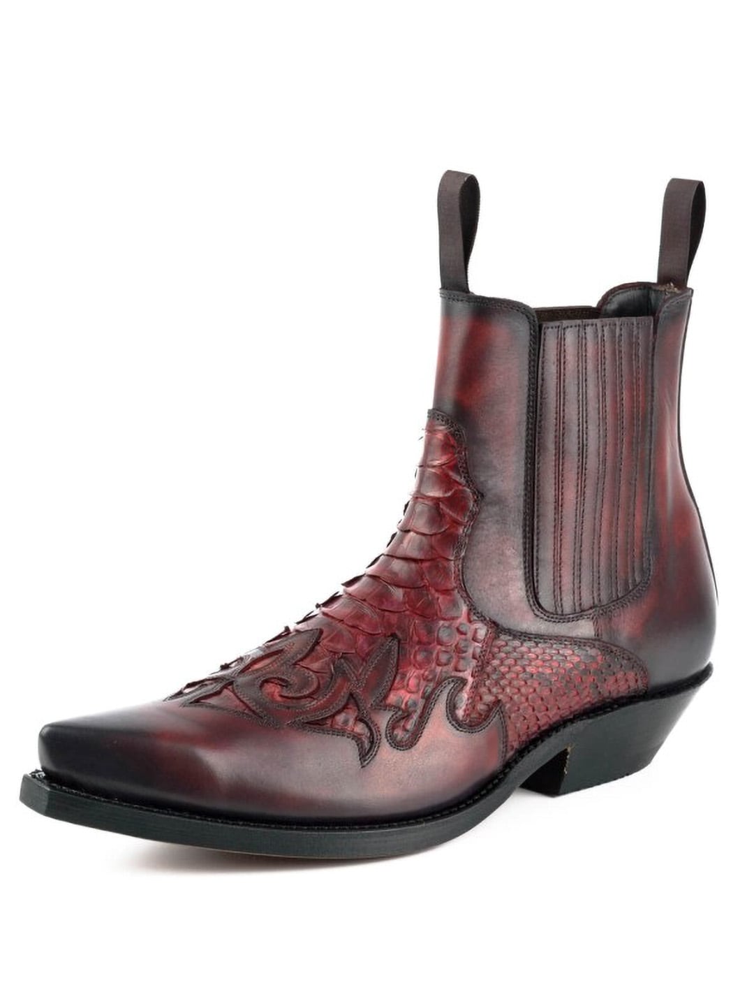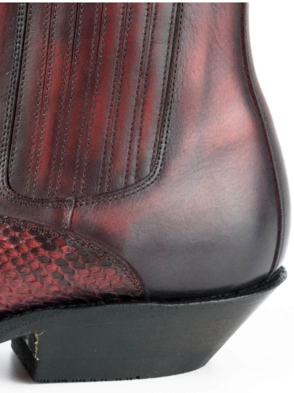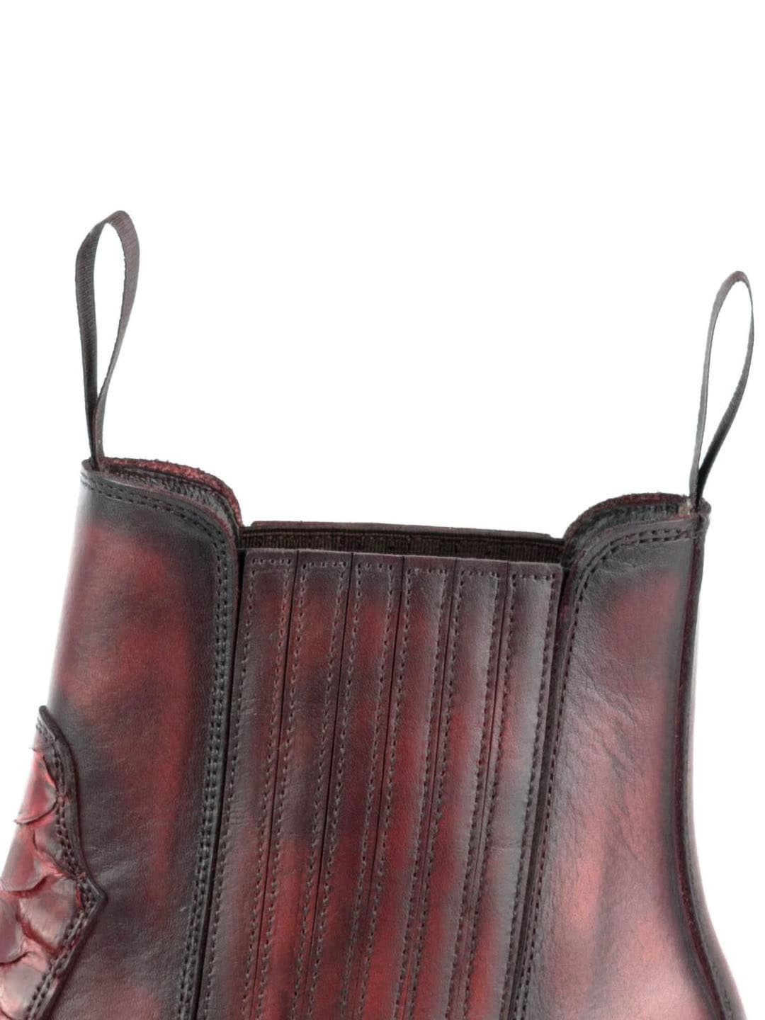 Karakterfulde boots i koskind og pyton med vintagefølelse og håndlavet finish, som giver hvert par et unikt udtryk. Modellen har dobbelte lædersåler og er håndlavet efter Goodyear Welt-systemet, hvilket giver høj slidstyrke, lang holdbarhed og meget god komfort. Et eksklusivt par boots til dig, der ønsker en model, som virkelig skiller sig ud.