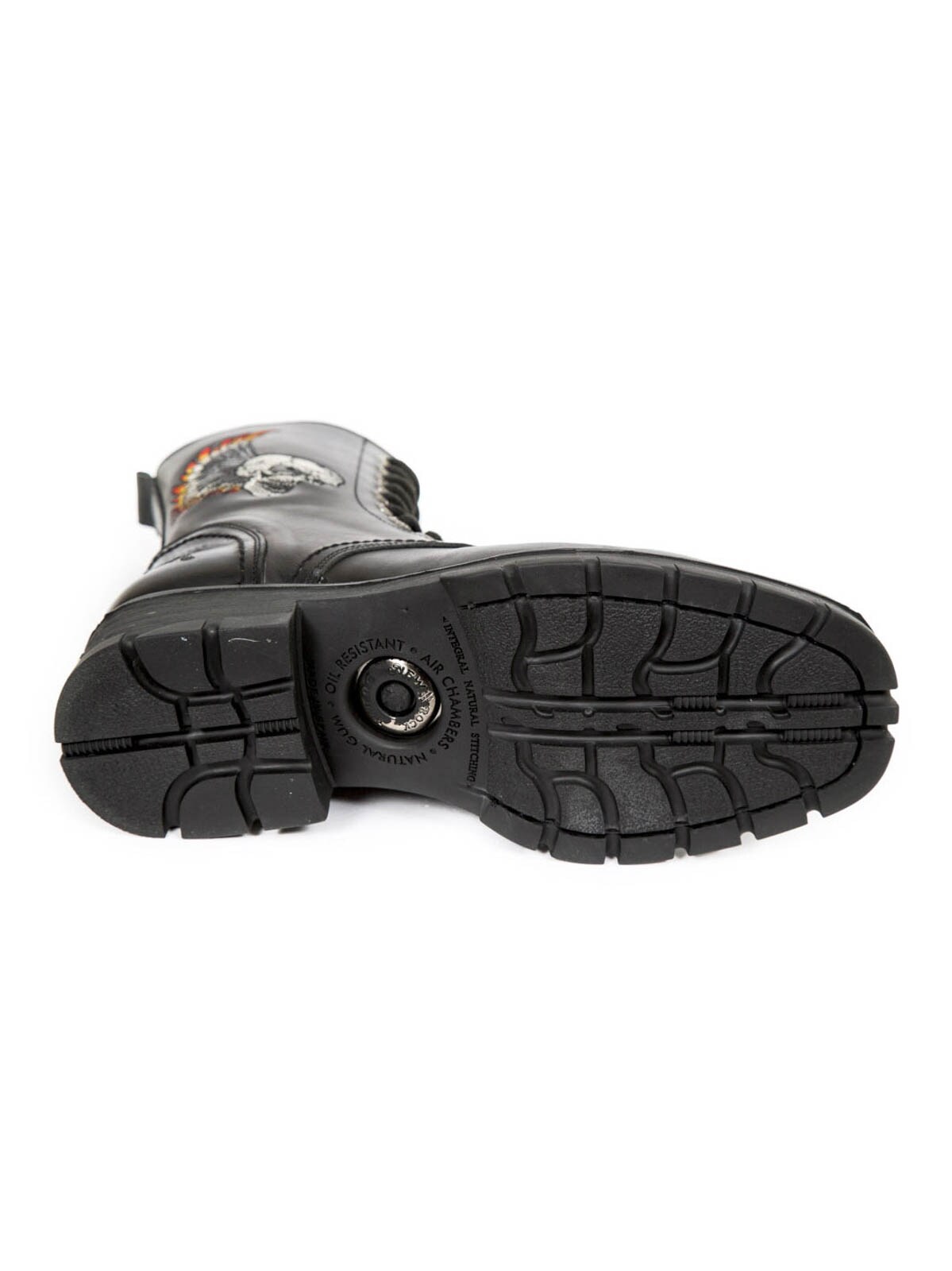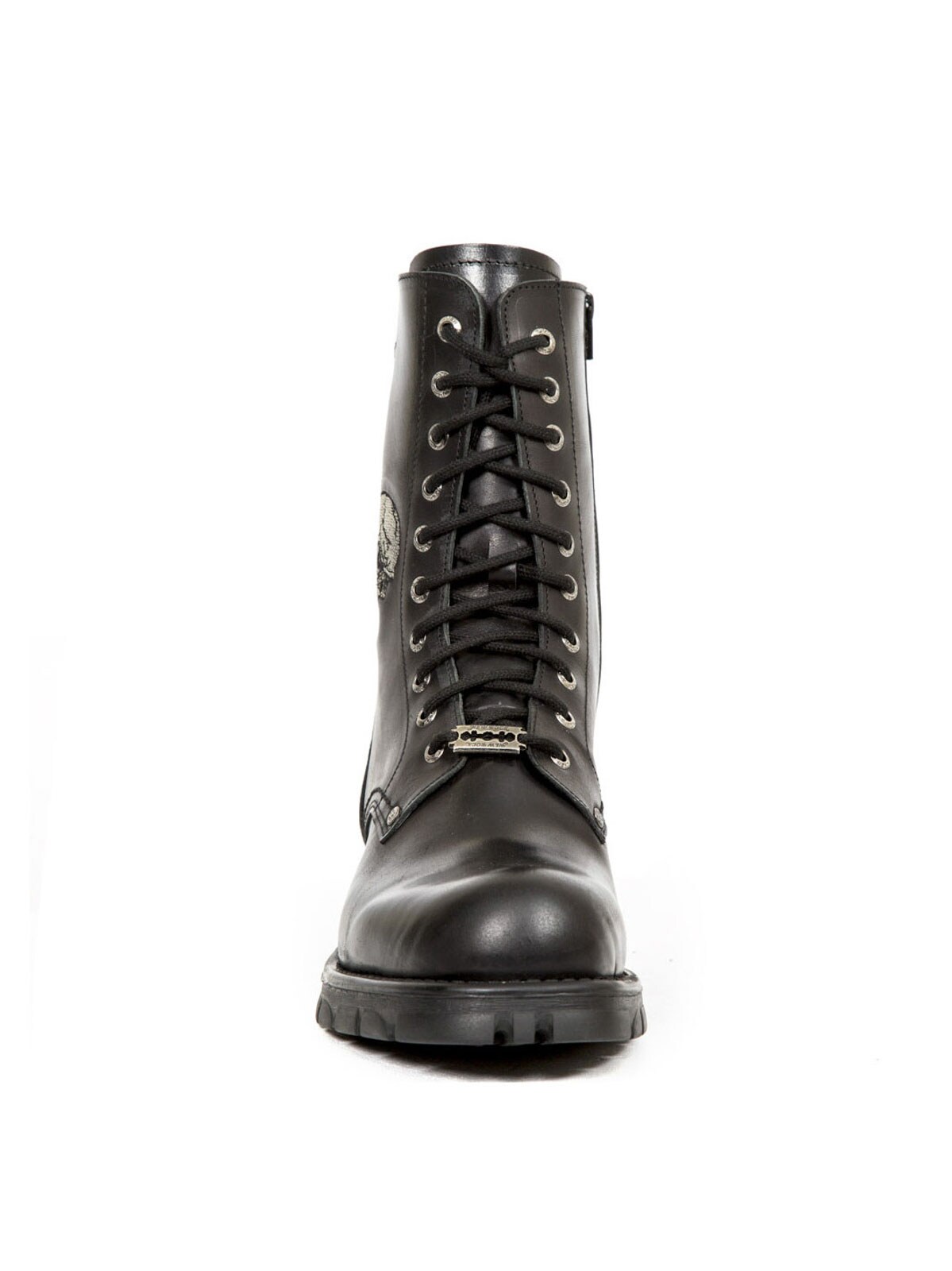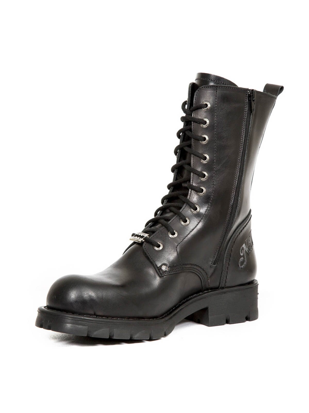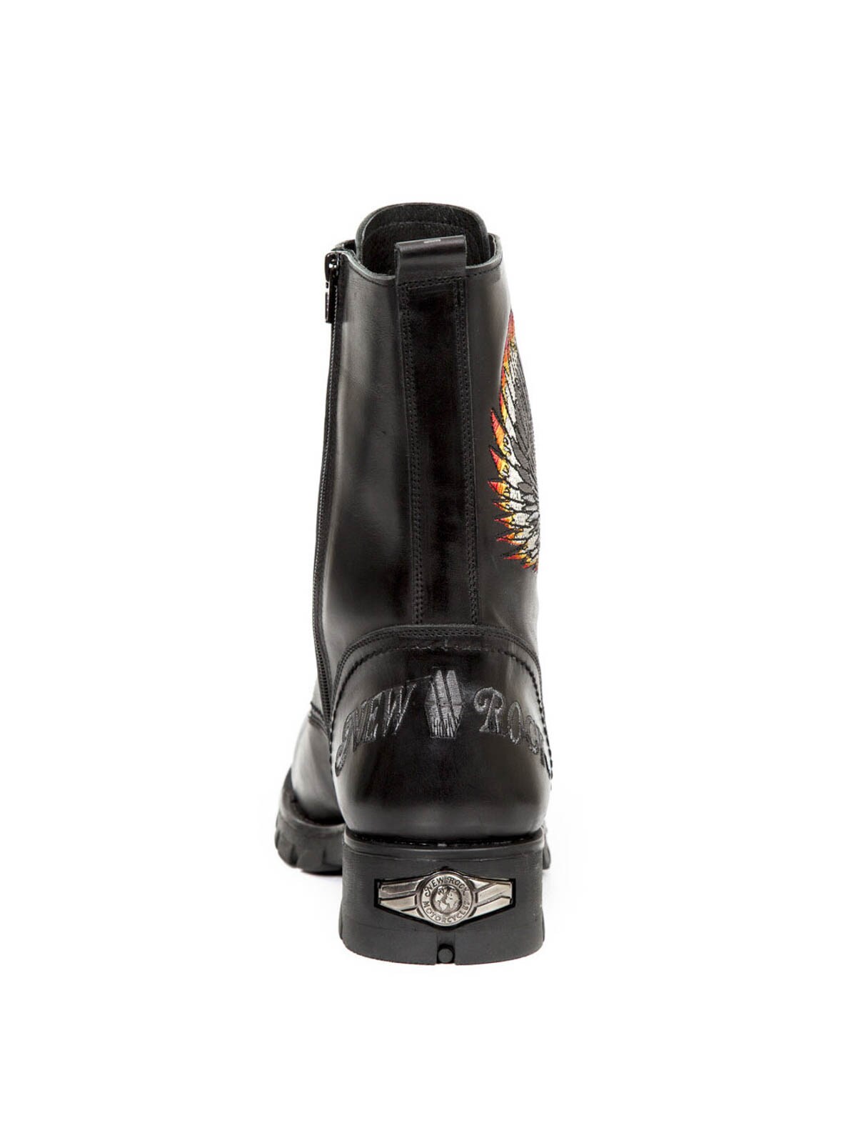 Sorte sko med mønsterbroderier. Disse støvler har et højt skaft med snøring, samt en lynlås på indersiden, hvilket gør dem lette at tage af og på. De er fremstillede i ægte læder og findes kun i et begrænset antal. Det er med til at gøre hver enkelt sko unik.