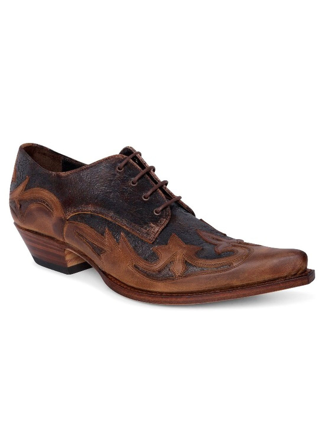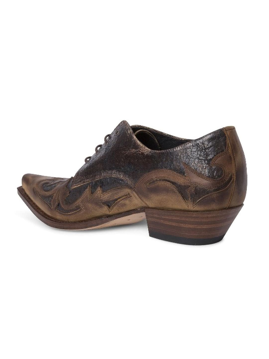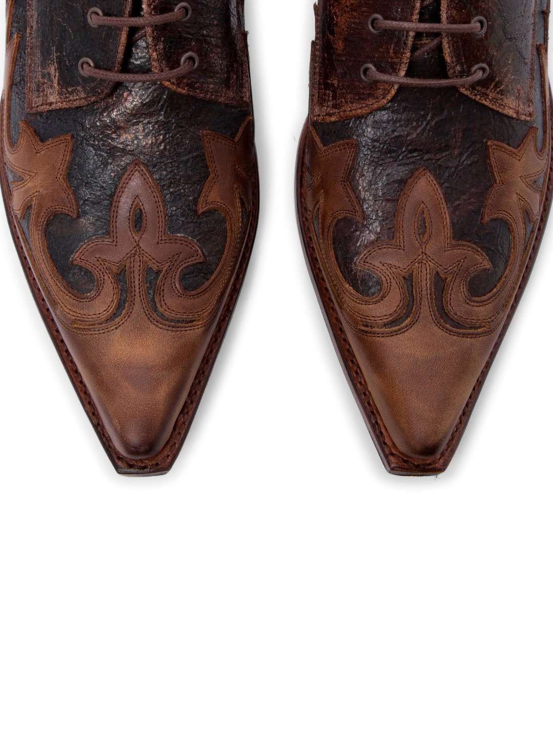 En unik sko i rustikt, patineret koskind, med to brune nuancer som giver en naturlig vintagefølelse. Den profilerede design og de udskårne detaljer skaber et tydeligt westernlook. Sålen er lavet af spansk kalveskind, og skoen er håndlavet efter det klassiske Goodyear Welt-system – en af de mest holdbare og prestigefyldte skokonstruktioner. Resultatet er en sko med imponerende holdbarhed, stabilitet og komfort, der former sig efter foden over tid. Perfekt til dig, der vil have noget robust, elegant og fuld af karakter!