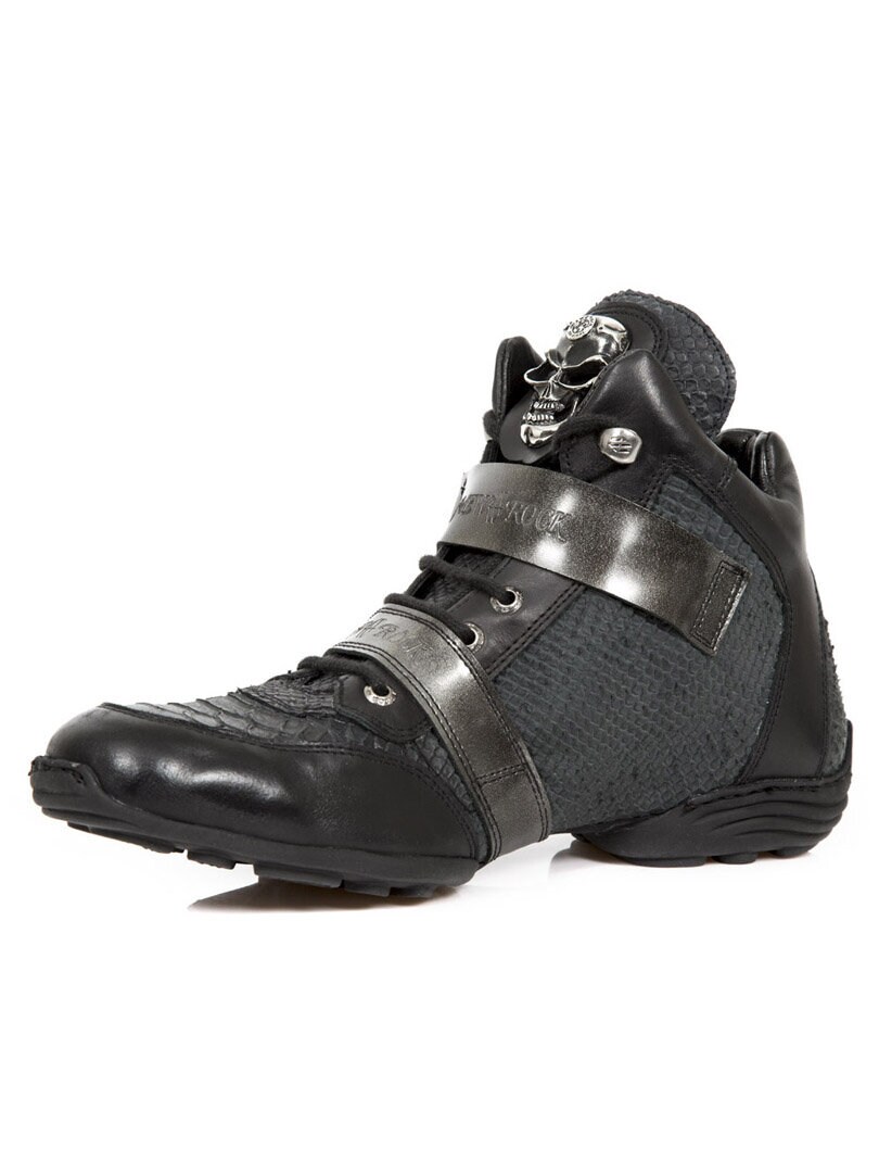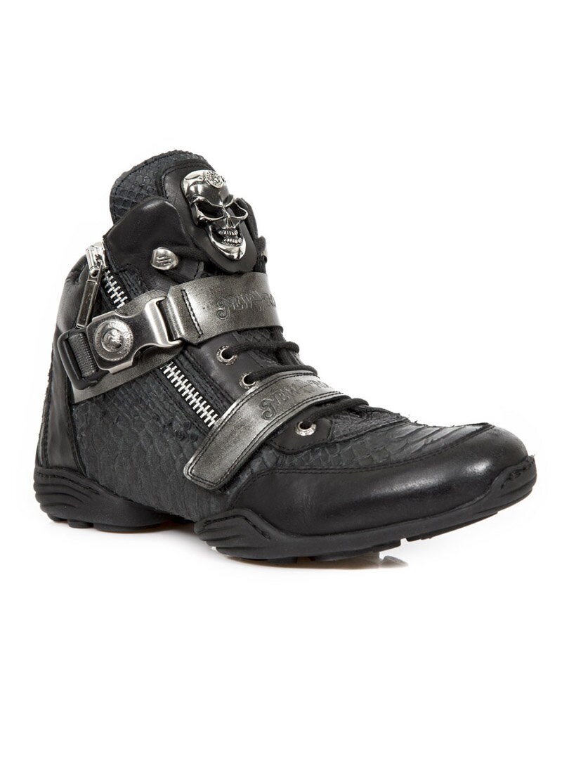 Sorte sneakers i et kvalitetslæder, hvor der er remme og detaljer i metal, hvilke er med til at give skoene ekstra attitude. De har snøring, lynlås og en grov sål i gummi. De findes i et begrænset oplag, så sørg for at anskaffe dig et par!