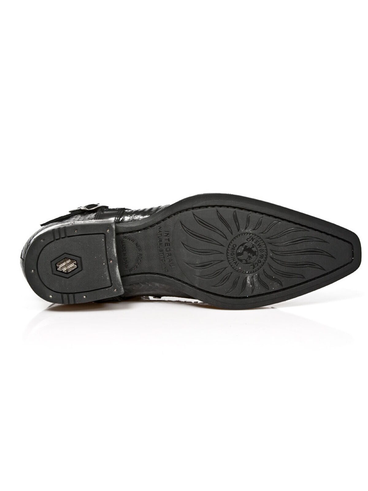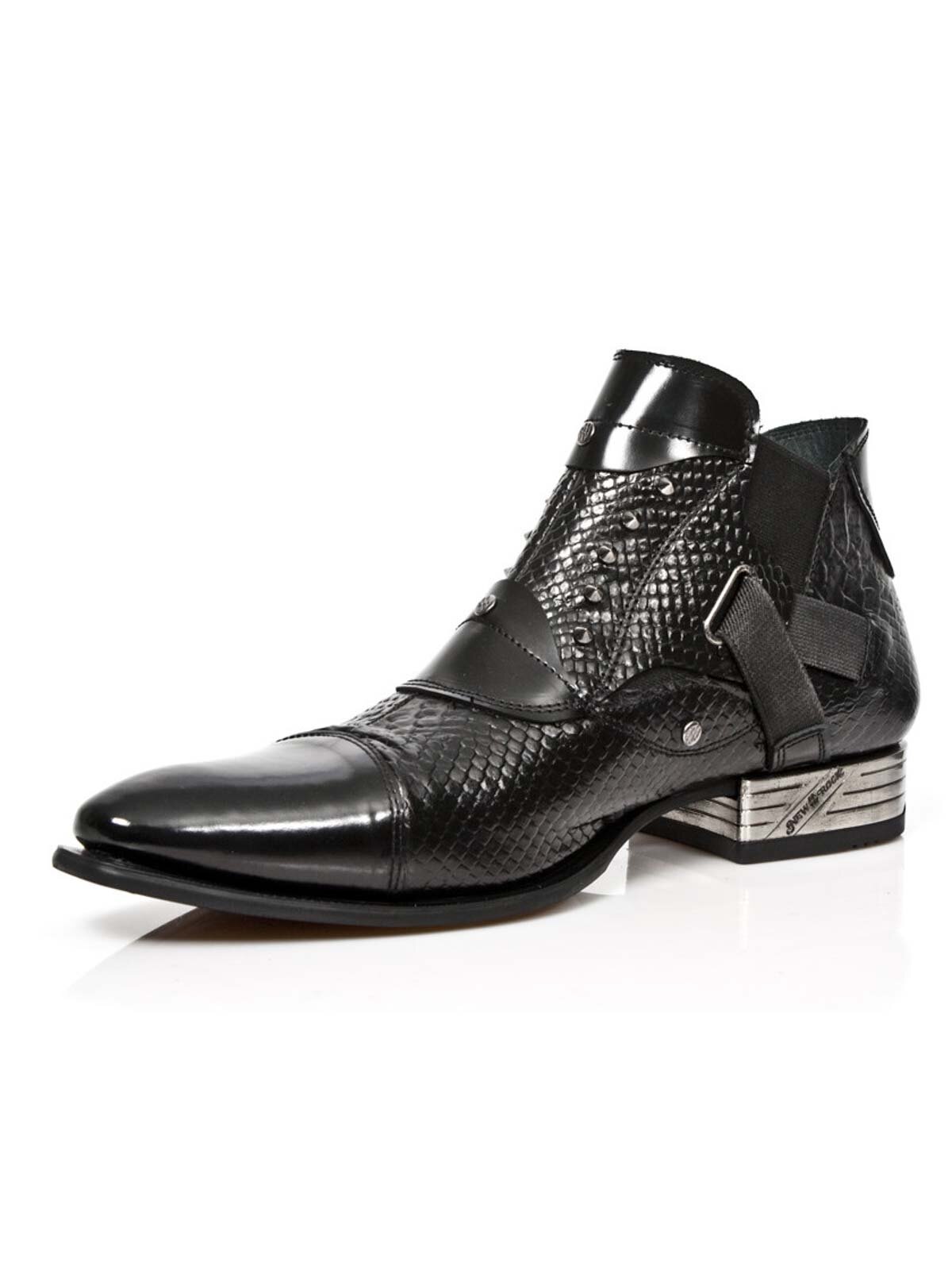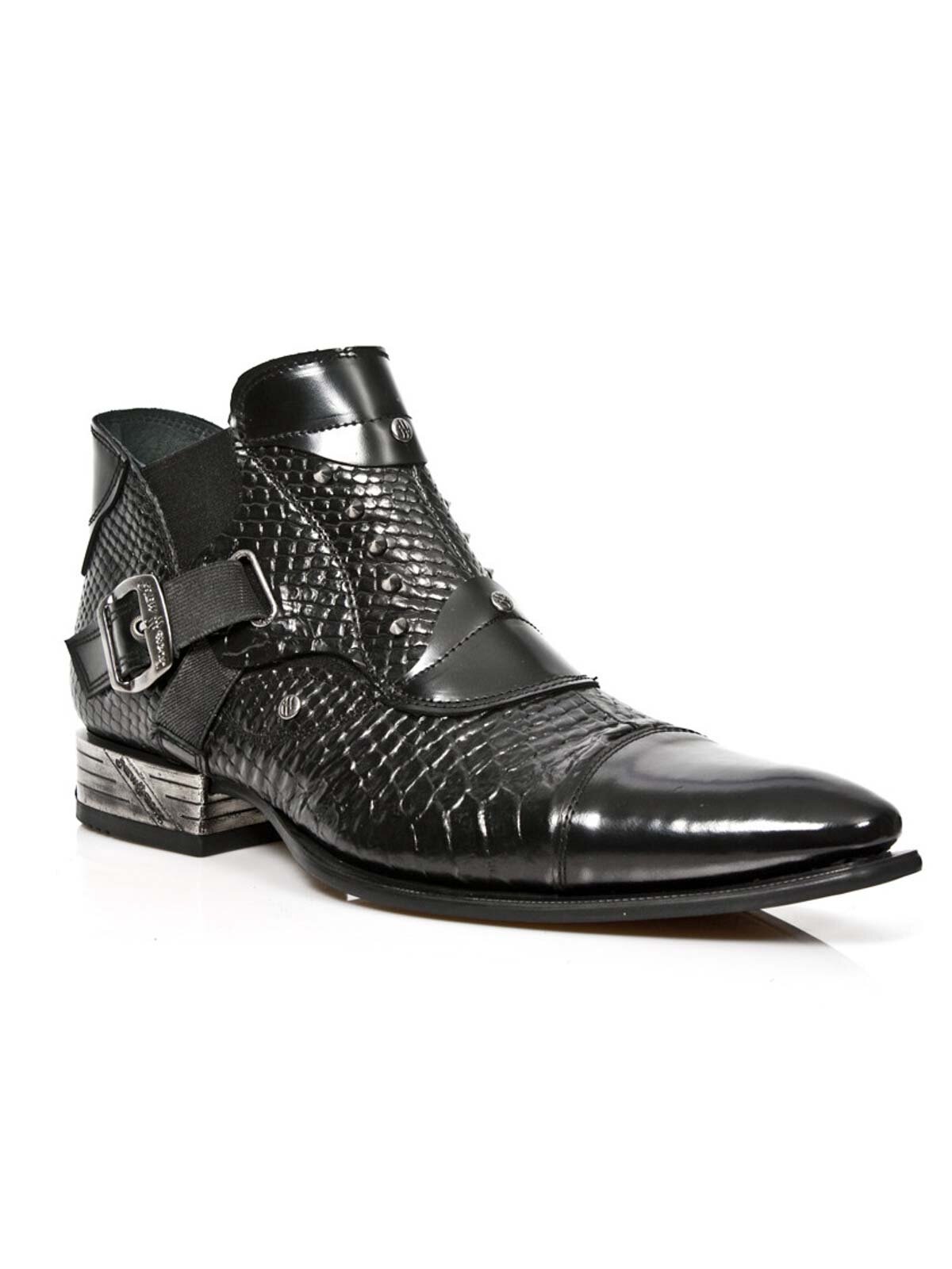 Sorte sko i ægte læder med mønster og lavt skaft. Detaljerede med nitter og stropper i elastik med spænde i metal. Elastik ved skaftets åbning, på begge sider, hvilket gør det lettere at tage dem af og på. Denne unikke sko findes i et begrænset oplag!