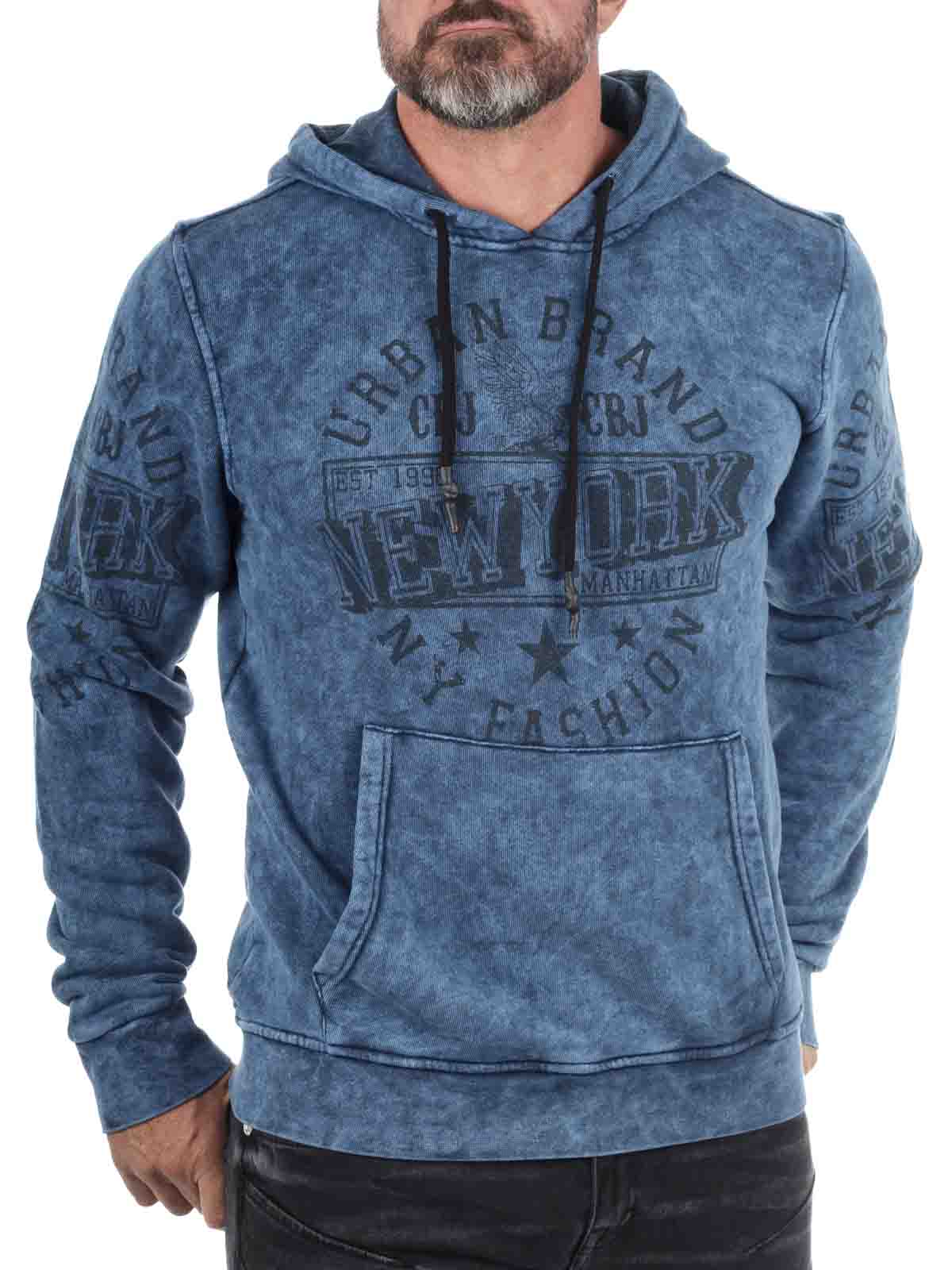 Hættetrøje med vasket look og New York-tryk. Den har justerbar hætte, kængurulomme og ribkanter for en behagelig pasform. Fremstillet i 100 % bomuld.
