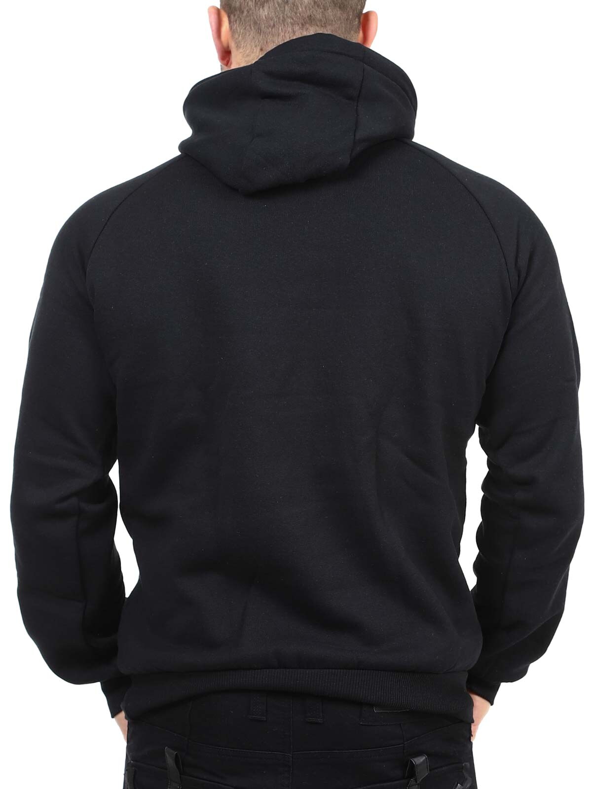 Hættetrøje med et logo. Den har en rummelig hætte med justerbare snøre og en lommer fortil på maven. Den har elastiske kanter ved ærmernes afslutning, hvilket giver en behagelig pasform.