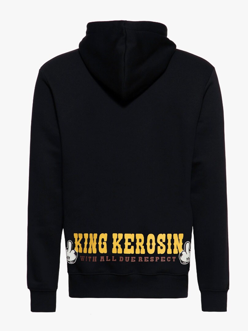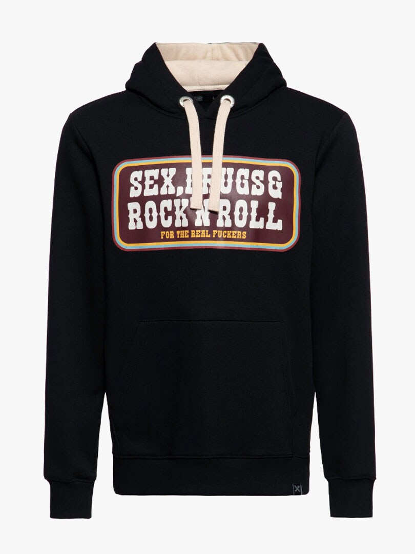 Blød og behagelig hættetrøje i sort farve. Trøjen har børstet inderside, mave-lomme og ribkant ved ærmer og bund. Designet fuldendes med en blød hætte med matchende snor, som giver et ekstra touch af attitude. Dette er hoodien til dig, der elsker rock ’n’ roll-attitude, personlig stil og et stykke tøj, der afspejler din egen livsfilosofi.