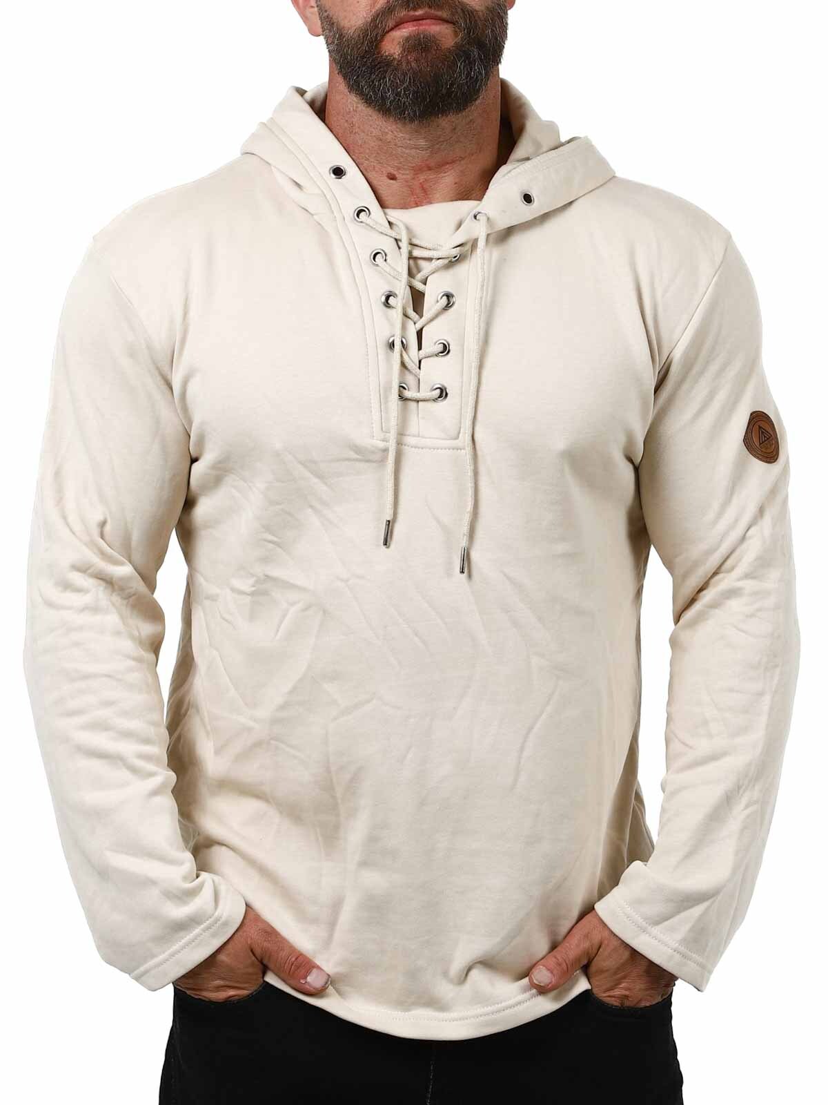 Sweater i en behagelig blanding af bomuld. Den er designet med hætte, snøre foran og lapp i en imitation med et logo på. Denne skjorte er specielt lavet til vores kunder og fås kun hos RockDenim!