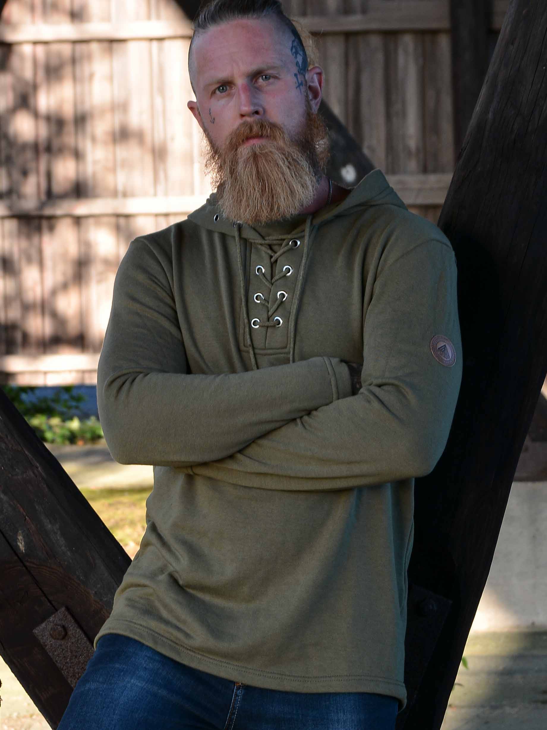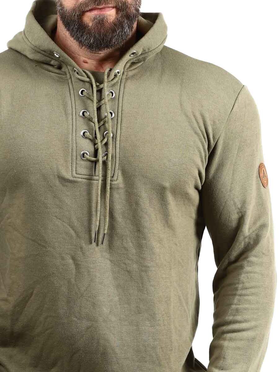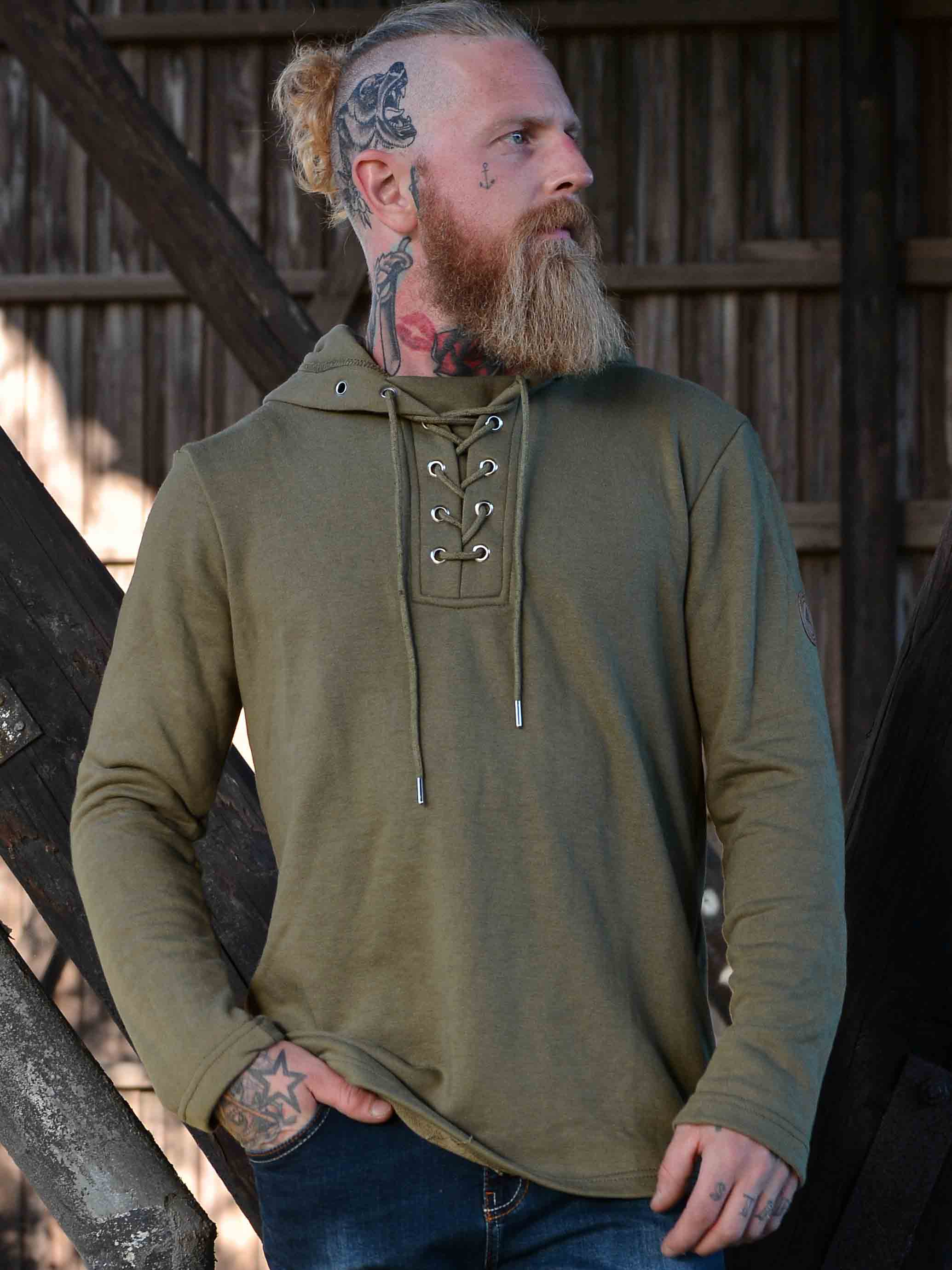Sweater i en behagelig blanding af bomuld. Den er designet med hætte, snøre foran og lapp i en imitation med et logo på. Denne skjorte er specielt lavet til vores kunder og fås kun hos RockDenim!