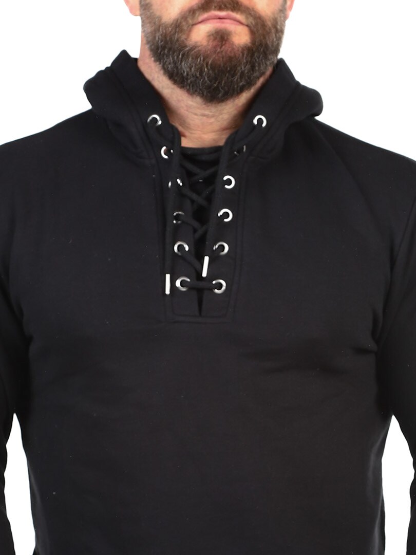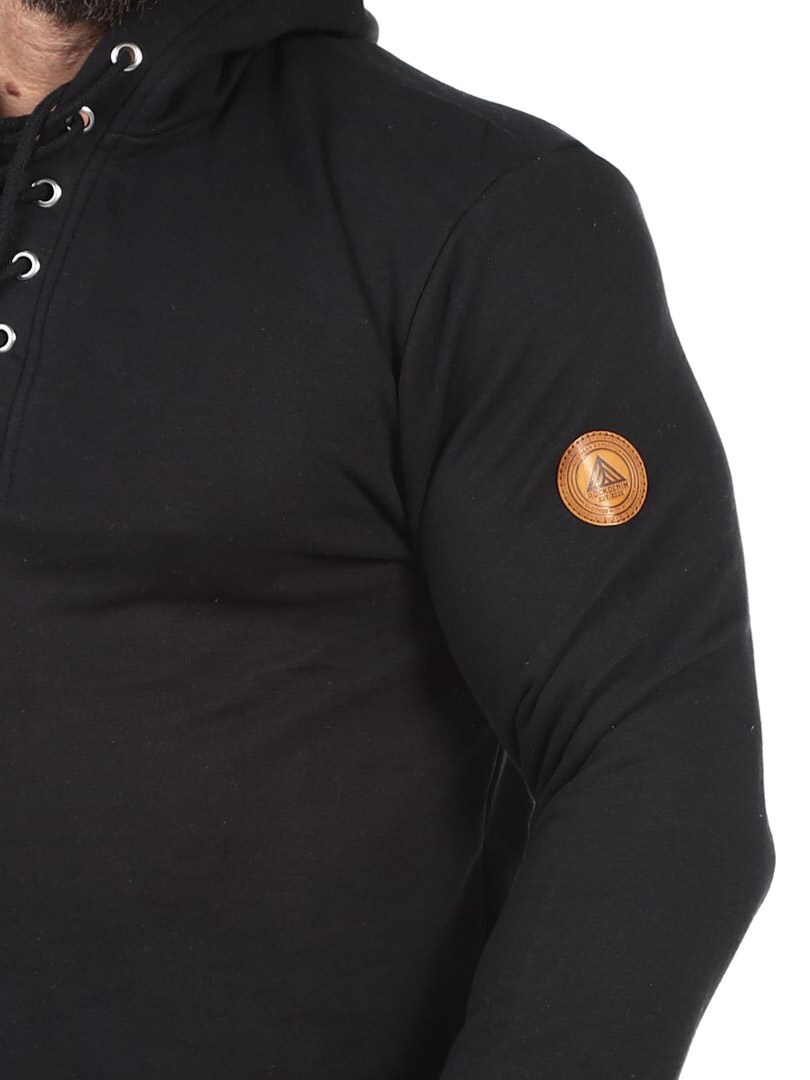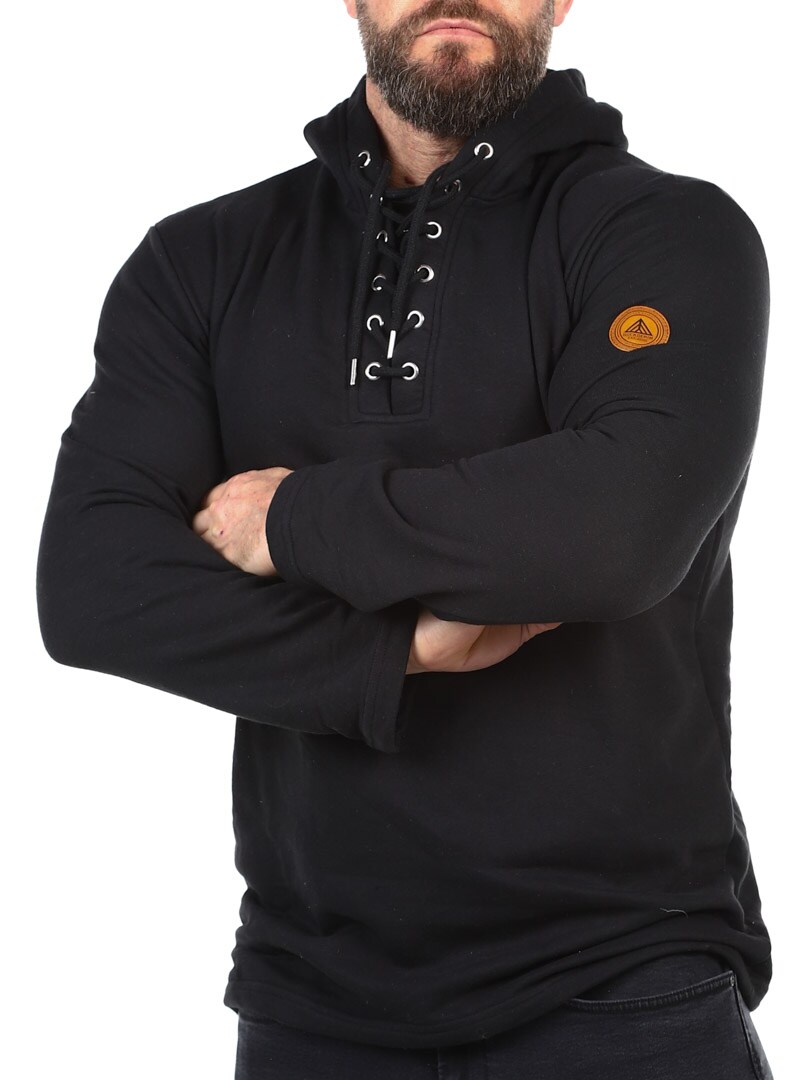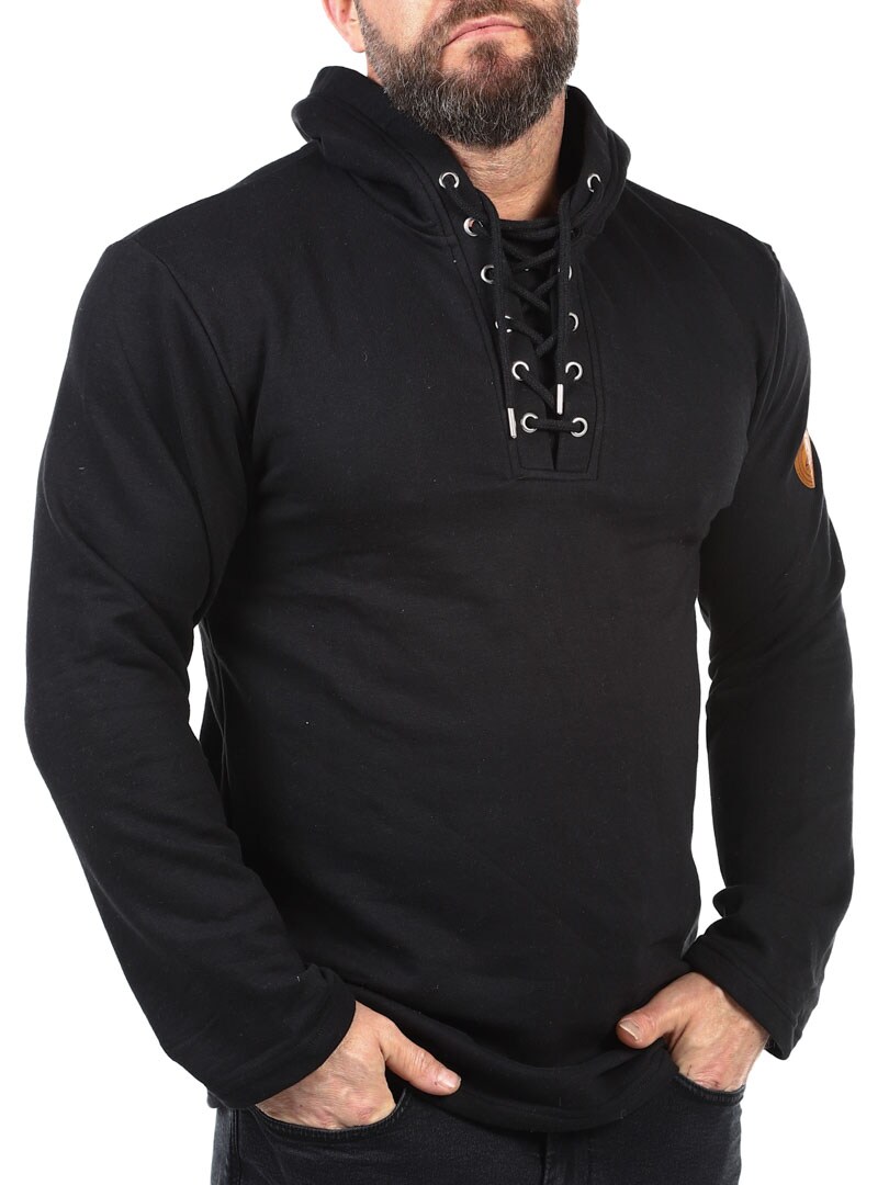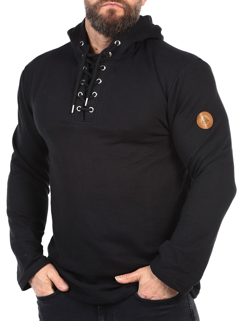 Sweater i en behagelig blanding af bomuld. Den er designet med hætte, snøre foran og lapp i en imitation med et logo på. Denne skjorte er specielt lavet til vores kunder og fås kun hos RockDenim!