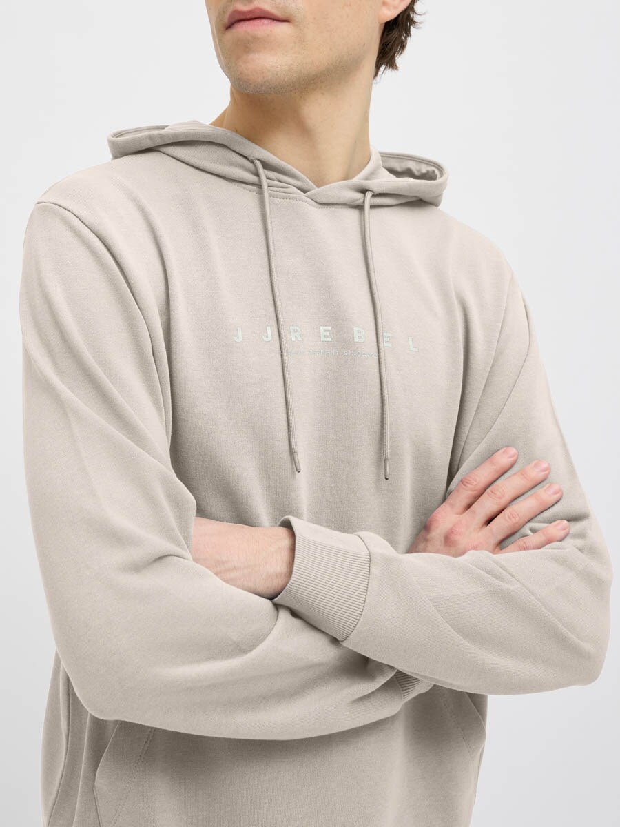 En moderne hoodie med stilrent logotryk og hætte. Den ribbede kant og hætten med elastik giver en afslappet pasform, mens det bløde materiale sikrer høj komfort hele dagen. Et alsidigt stykke tøj, der passer lige godt til hverdag og fritid.