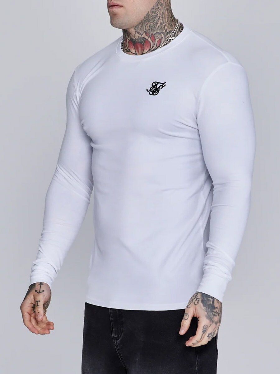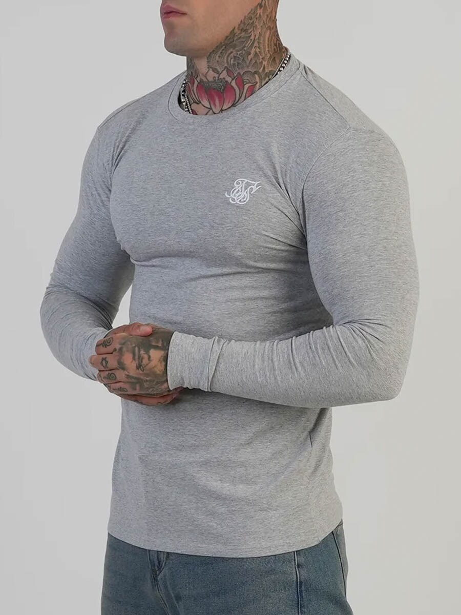 En tætsiddende trøje i en strækbar bomuldsblanding, designet til at fremhæve overkroppen og give en behagelig pasform takket være det bløde og elastiske materiale. Den har rund halsudskæring, lange ærmer og et broderet logotryk på brystet.