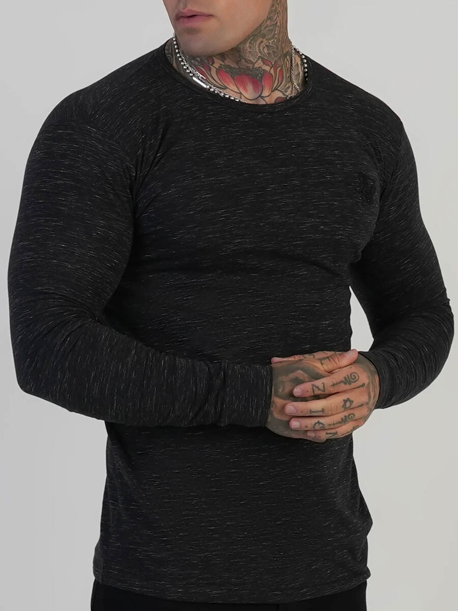 Stilren langærmet trøje, hvor den såkaldte marl-struktur giver stoffet et levende udtryk med subtile nuanceforskelle. Fremstillet i et blødt og strækbart materiale, der følger kroppen og føles behageligt hele dagen. Designet med en diskret logo på brystet.