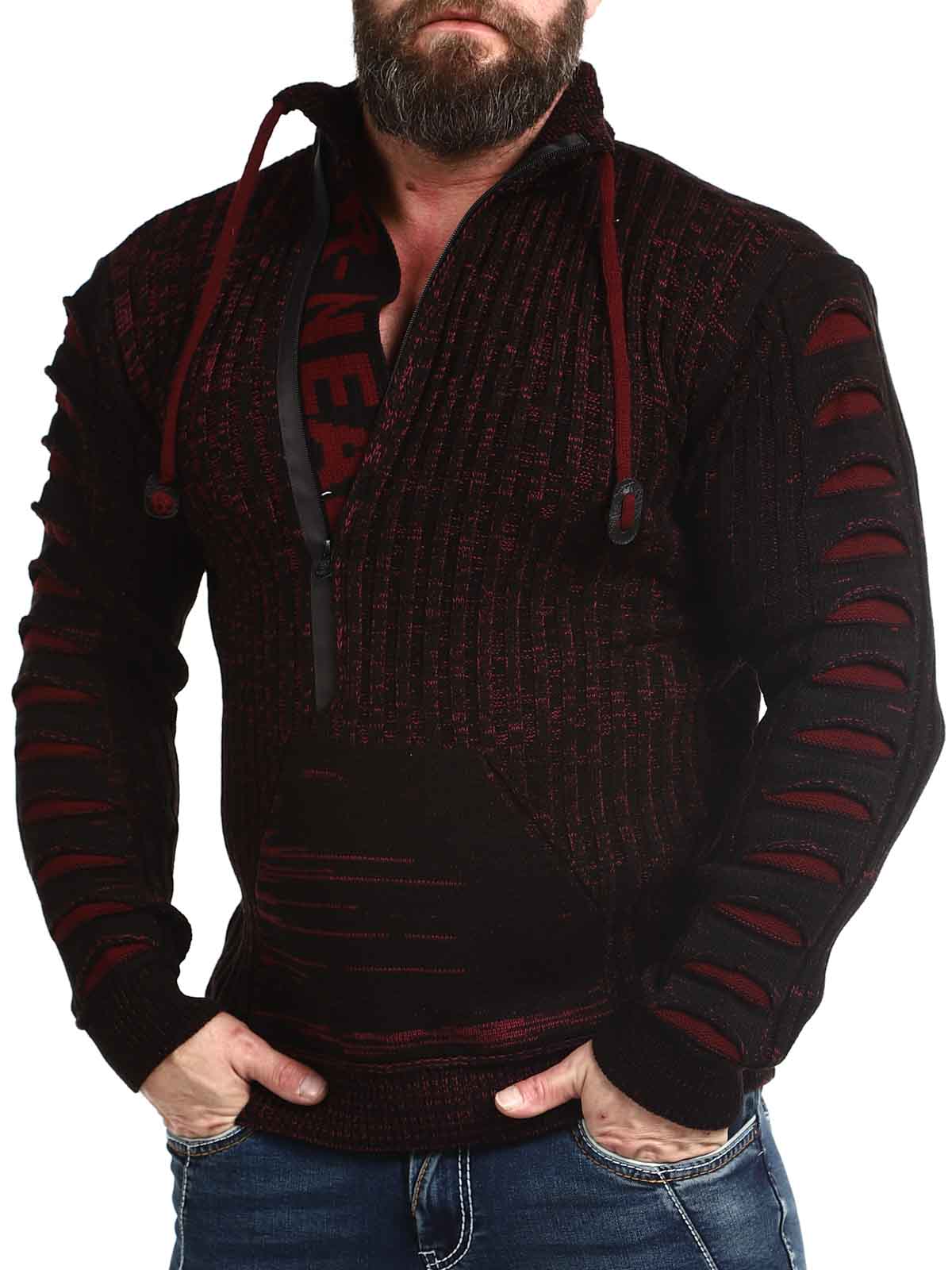 Høj hals med snøre og lynlås. Åbner man kraven ses en strikket tekst som en cool detalje. Stor lomme fortil og strikkede revner i stoffet på ærmerne. Findes i flere farver!