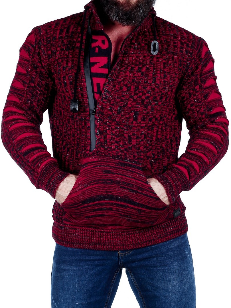 Høj hals med snøre og lynlås. Åbner man kraven ses en strikket tekst som en cool detalje. Stor lomme fortil og strikkede revner i stoffet på ærmerne. Findes i flere farver!