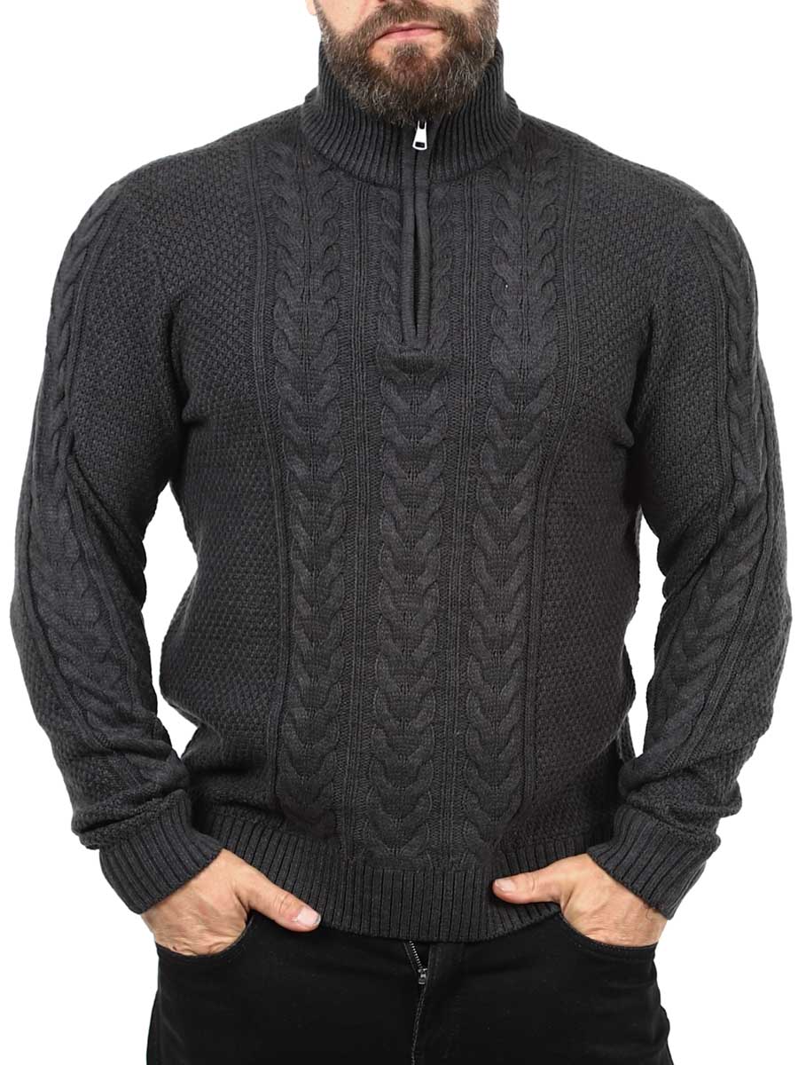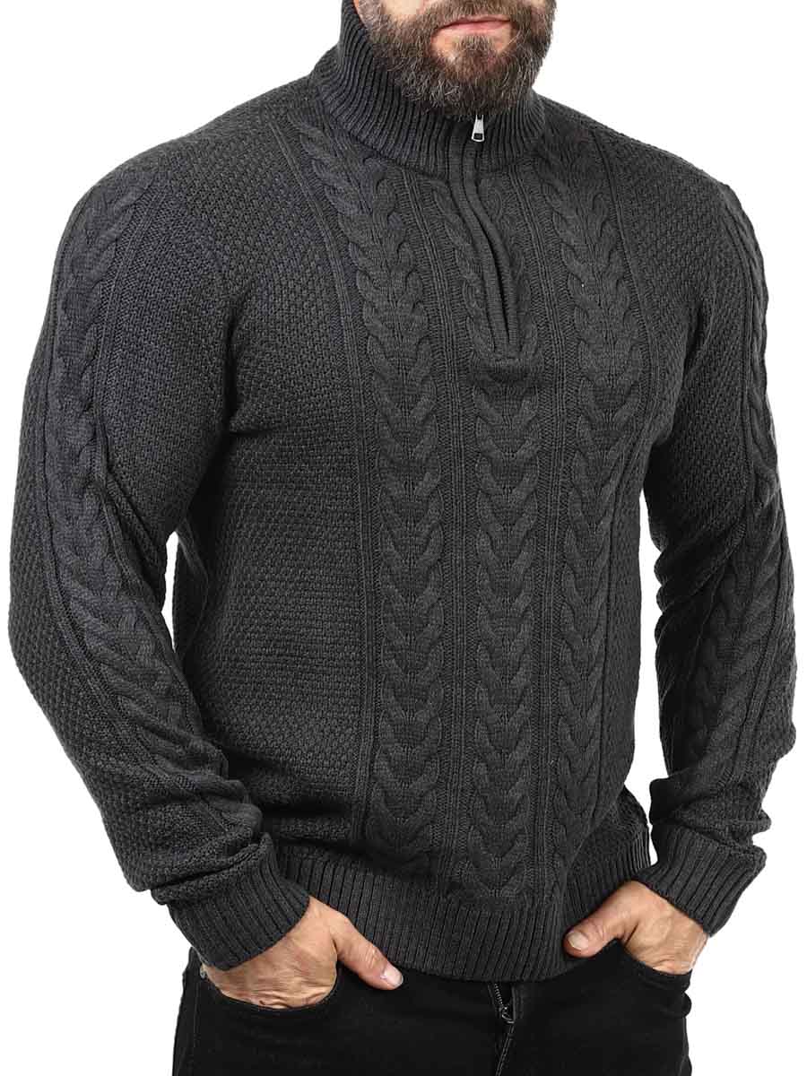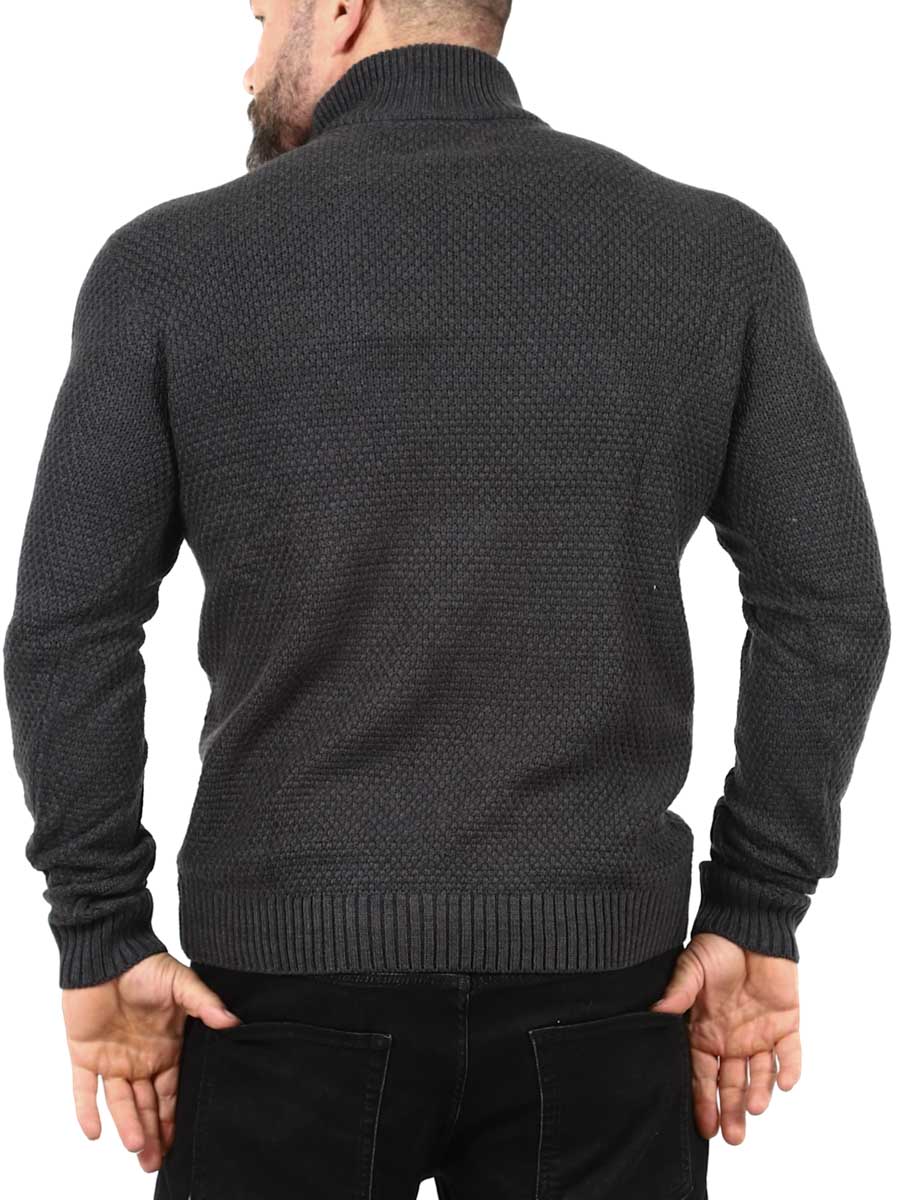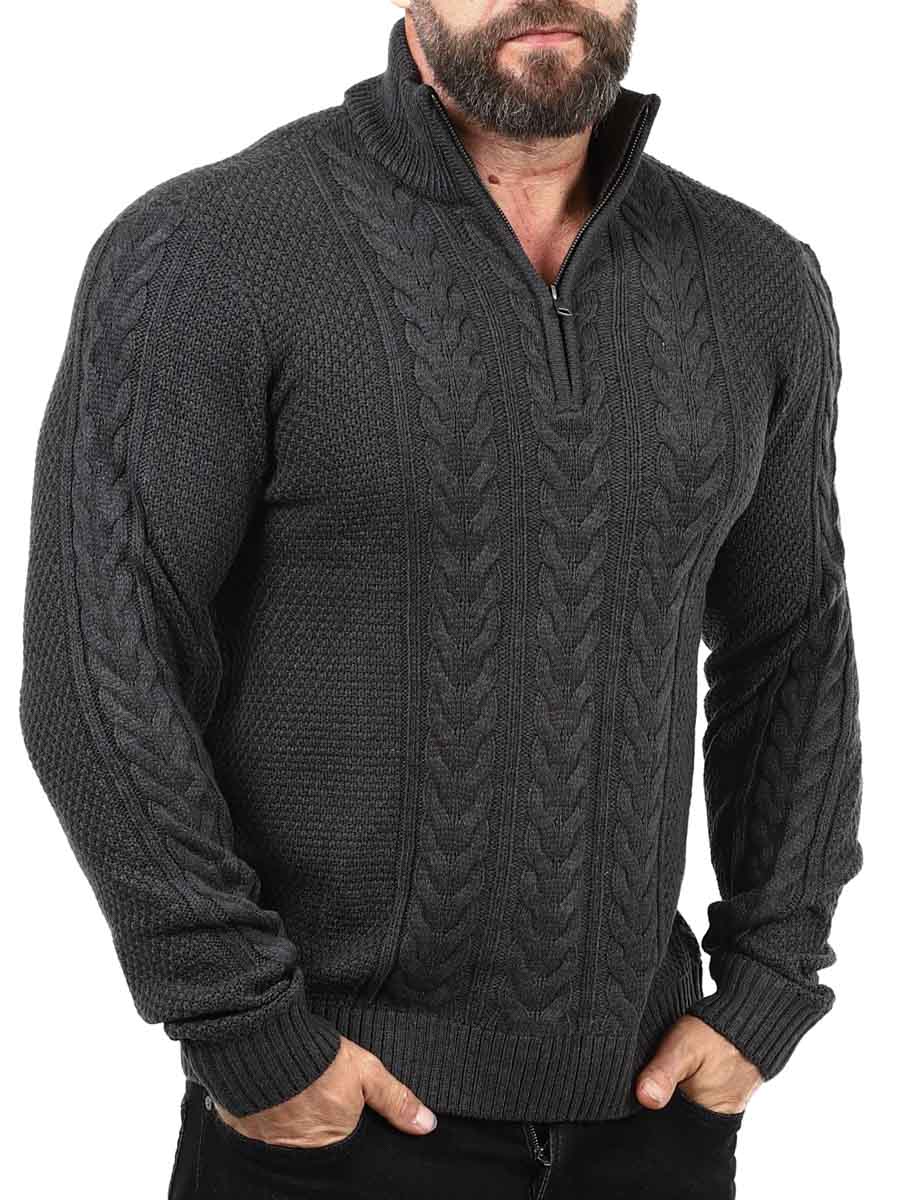 En tidløs klassiker med moderne funktion. Denne mørke striktrøje er fremstillet i et blødt, varmende materiale. Designet med ribstrik ved ærmeafslutningerne og i underkanten, høj hals og lynlås. Perfekt at bære som et lag under jakken eller som en stilren trøje for sig selv.