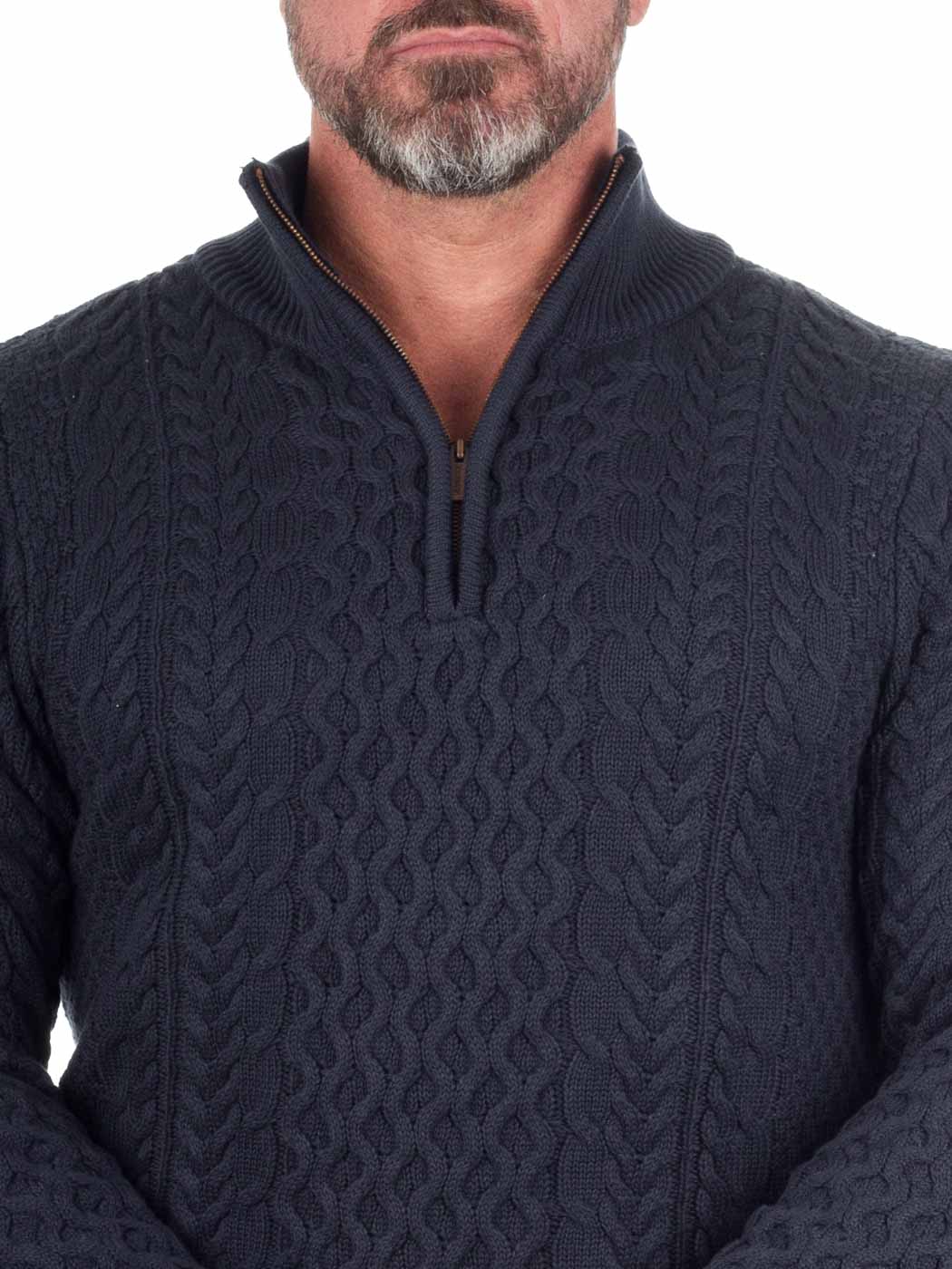 En stilfuld trøje i kabelstrik med halvlang lynlås. Fremstillet af en blød bomuldsblanding for komfort og varme. Den ribstrikkede krave, manchetter og forneden sikrer en god pasform og et elegant look.