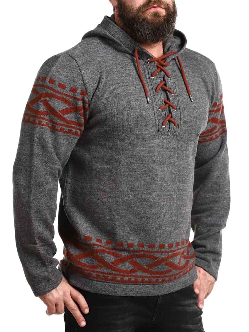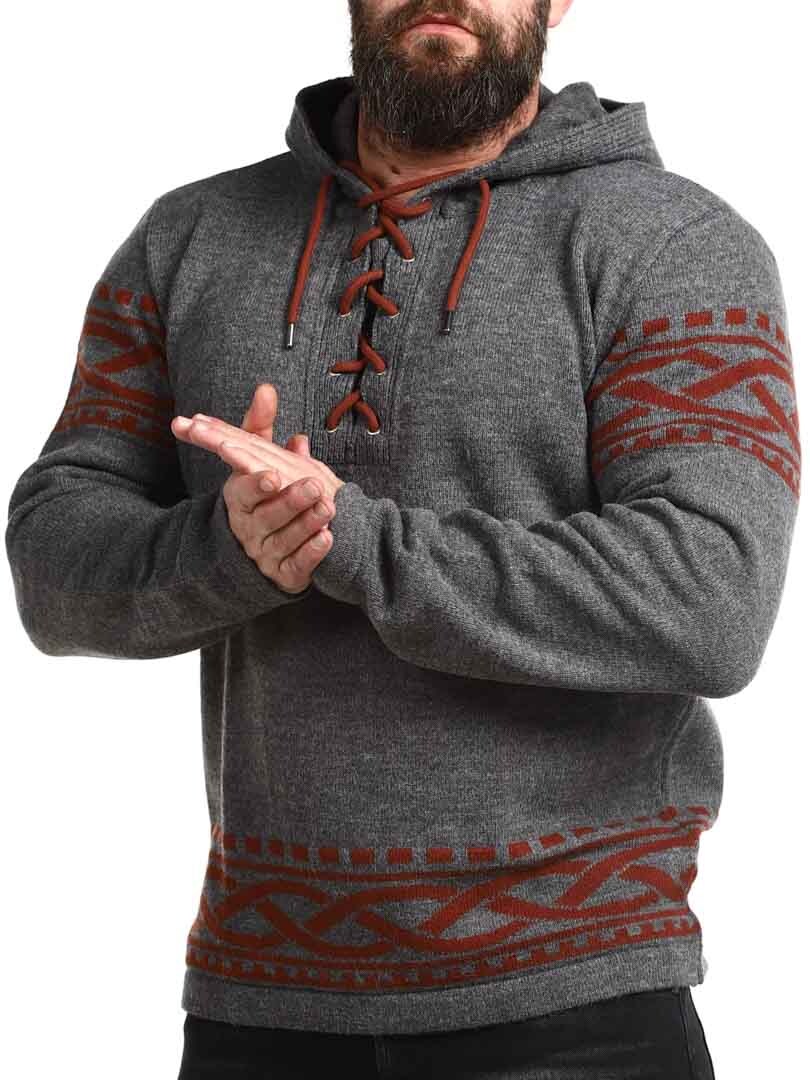 Mærk kraften fra Norden med vores vikingeinspirerede hættetrøje – en perfekt kombination af rå stil og moderne komfort. Trøjen har et autentisk nordisk mønster med tydelige vikingedetaljer på ærmer og kant, samt snøre ved halsåbningen, der giver et traditionelt og kraftfuldt udtryk. Den er lavet i et blødt og varmt materiale, der holder dig komfortabel hele dagen – uanset om du er ude i naturen eller vil skille dig ud i hverdagen.