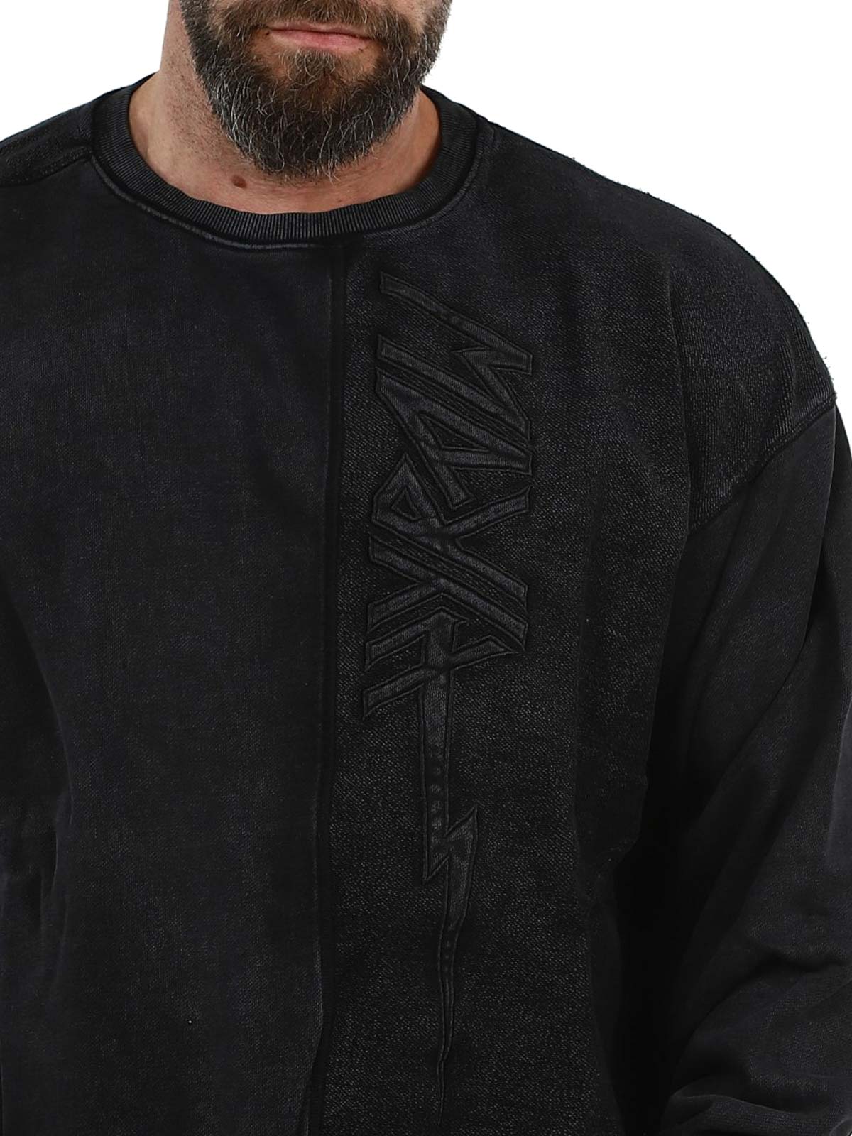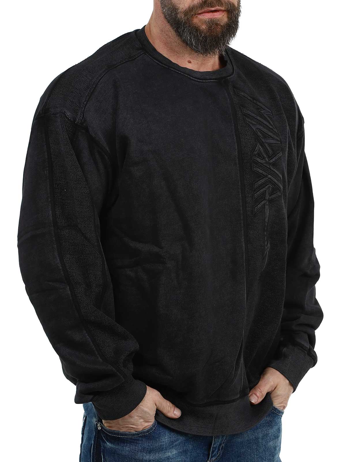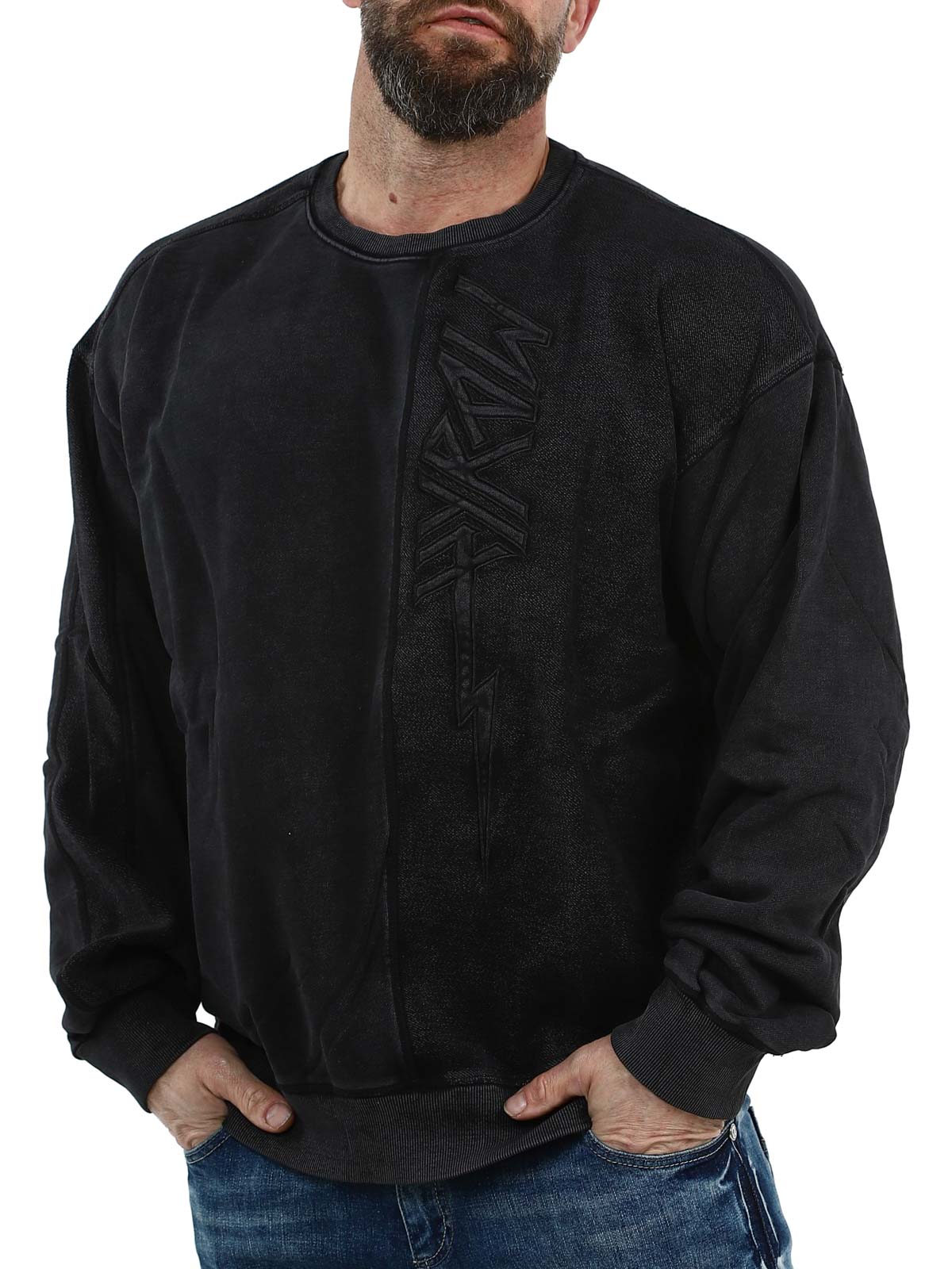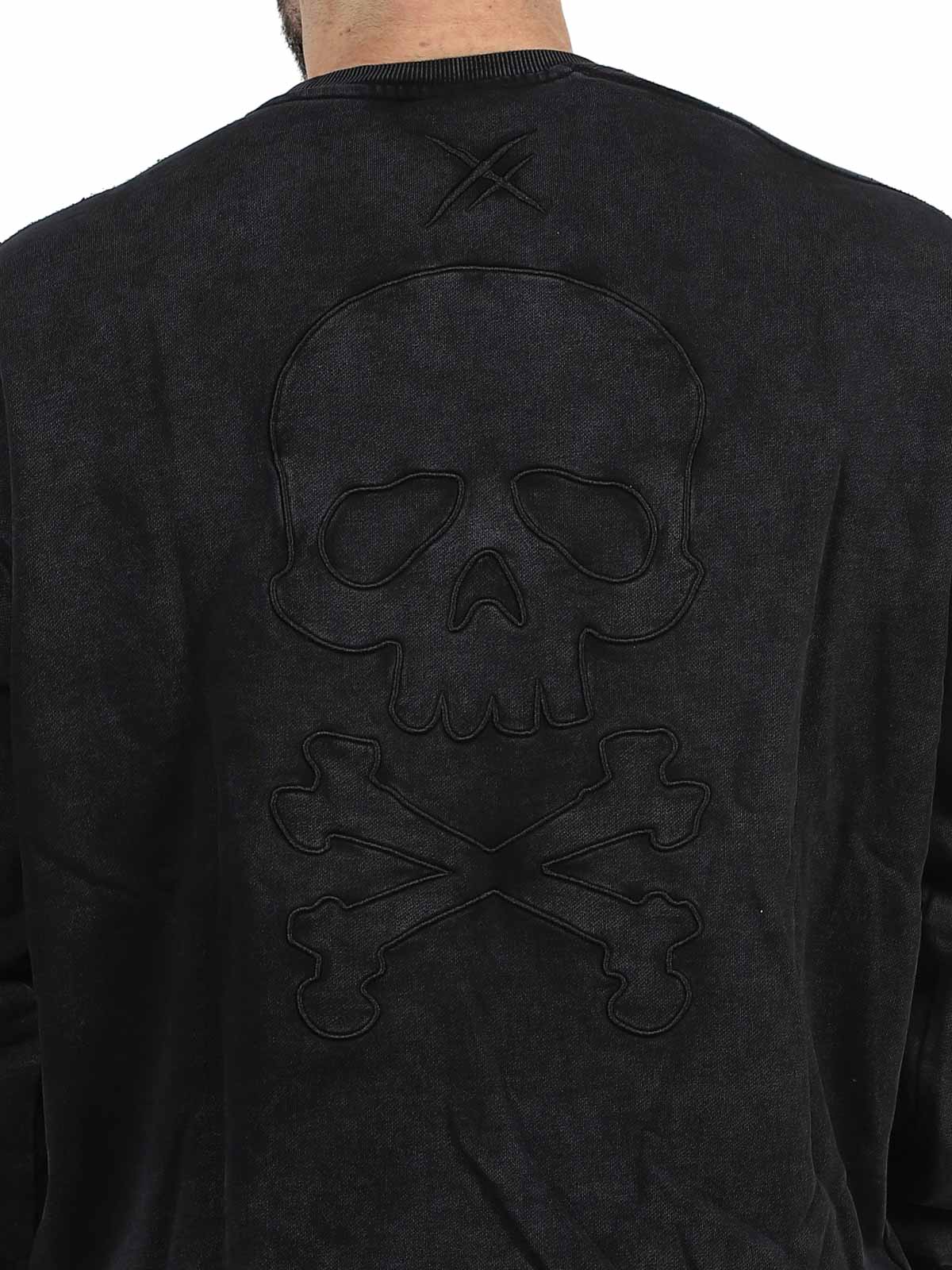 Sort sweatshirt med vasket look, designet med Hyraw-logo foran og et stort dødningehovedmotiv på ryggen. Modellen har en oversized pasform, som giver et afslappet og moderne udtryk, perfekt til dig der ønsker både stil og bevægelsesfrihed. Trøjen har også ribkanter ved ærmer og nederkant for en behagelig pasform.