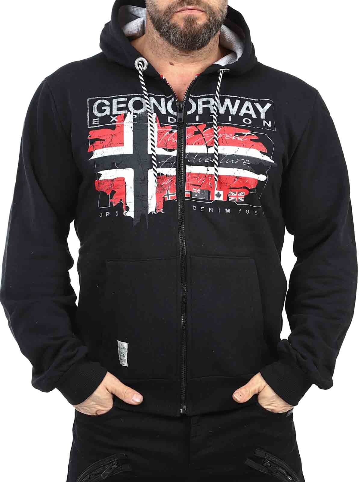 Hættetrøje med et logo og lynlås. Den har en rummelig hætte med justerbare snøre og en stor lomme fortil på maven. Elastiske kanter ved ærmernes afslutning og i taljen giver en behagelig pasform.