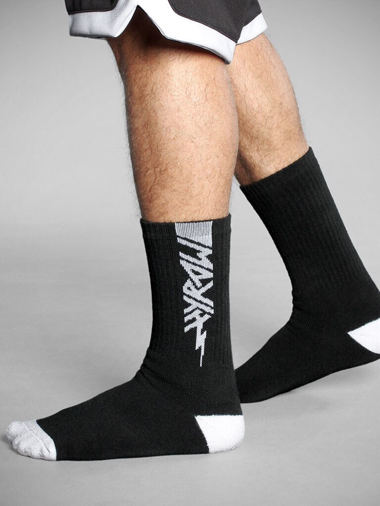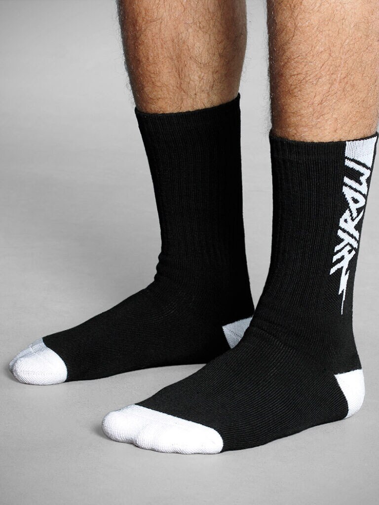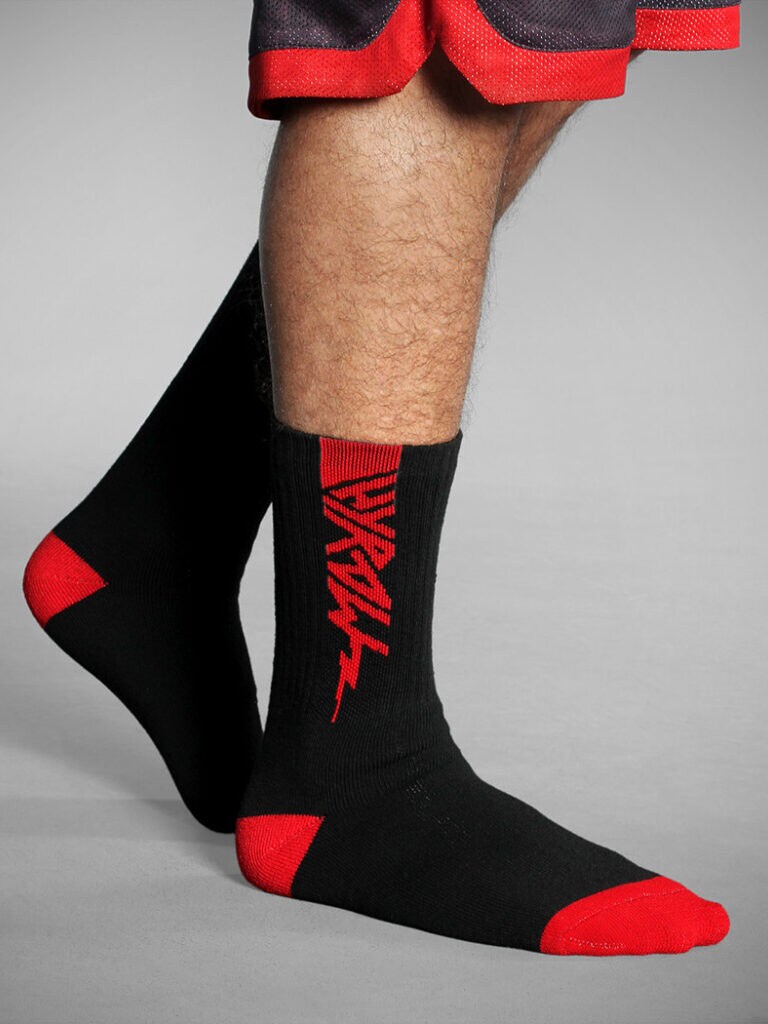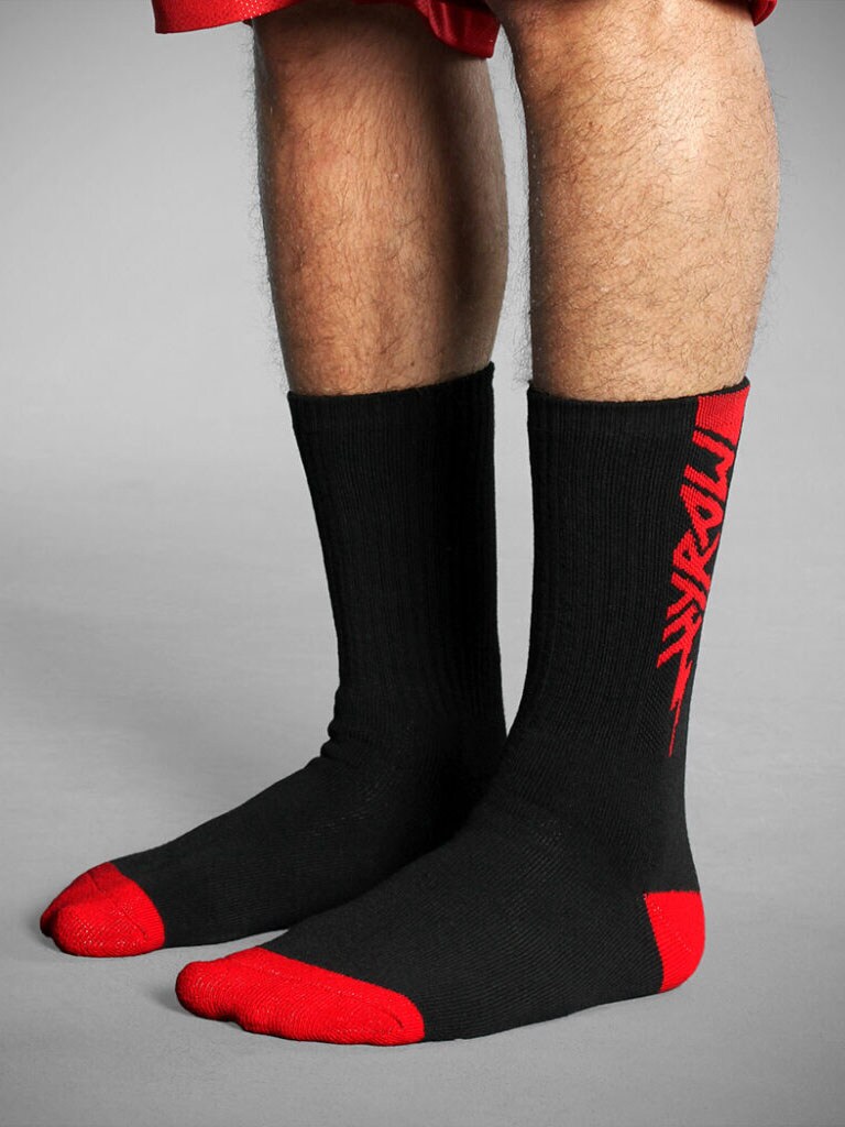 Denne 2-pak indeholder to par sorte sokker med HYRAW-logoet på skaftet i rød og hvid. Fungerer lige godt med støvler som sneakers.