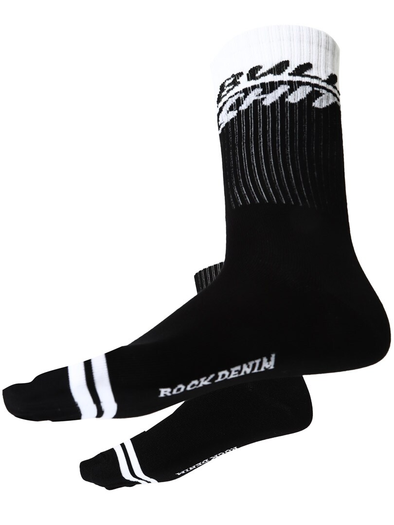 Strømperne er lavet i en lækker bambuskvalitet, som har gode egenskaber som temperaturregulering, ekstra åndbarhed og som svedtransporterende. Bambus føles blødere end fx bomuld. "Rockdenim" med små hvide bogstaver under foden. Bambusplanten har et naturligt forsvar mod bakterier, hvilket betyder, at den vokser uden giftige pesticider. Det er bæredygtigt og noget vi er stolte af at tilbyde!