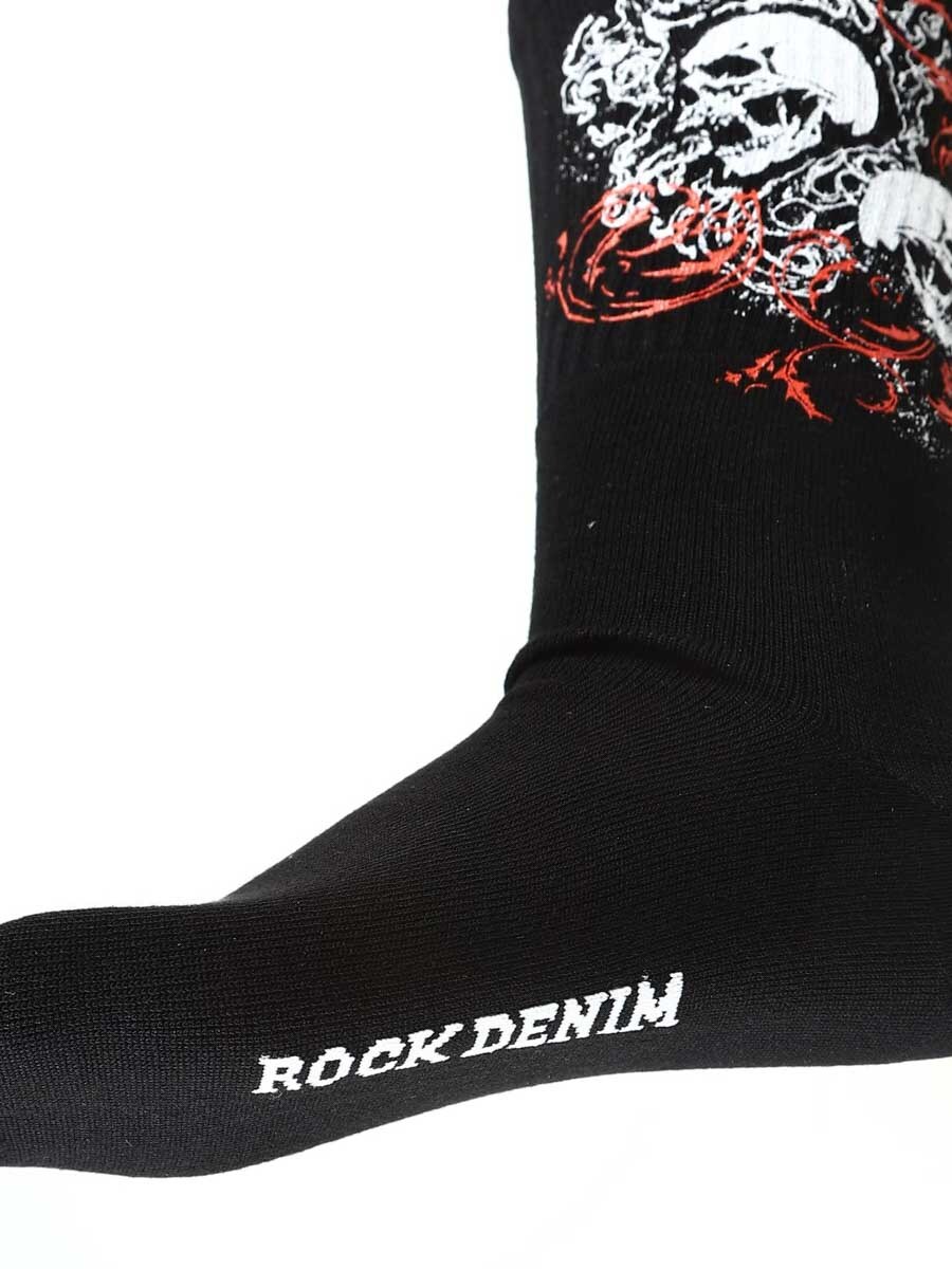 Strømperne er lavet i en lækker bambuskvalitet, som har gode egenskaber som temperaturregulering, ekstra åndbarhed og som svedtransporterende. Bambus føles blødere end fx bomuld. "Rockdenim" med hvide bogstaver under foden. Bambusplanten har et naturligt forsvar mod bakterier, hvilket betyder, at den vokser uden giftige pesticider. Det er bæredygtigt og noget vi er stolte af at tilbyde!