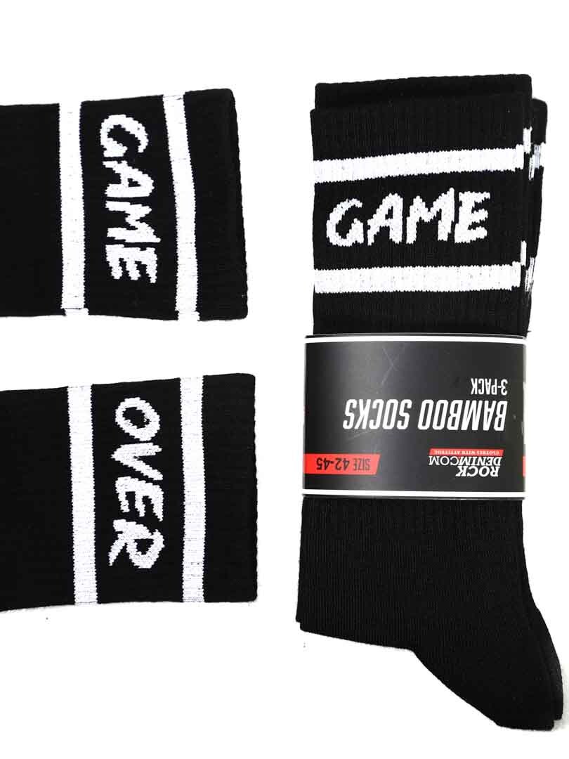 3-pak bambusstrømper i super kvalitet med teksten "Game Over"