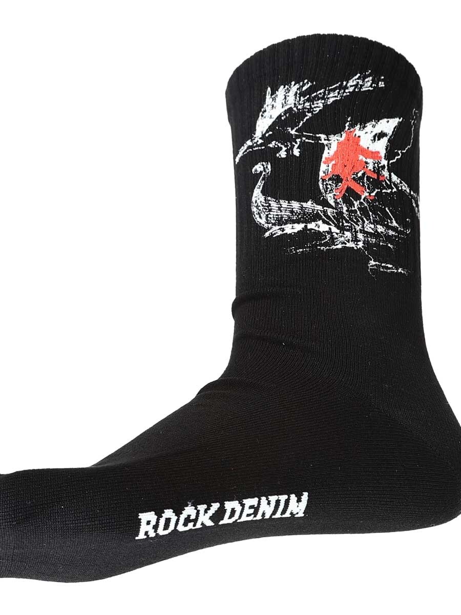 Strømperne er lavet i en lækker bambuskvalitet, som har gode egenskaber som temperaturregulering, ekstra åndbarhed og som svedtransporterende. Bambus føles blødere end fx bomuld. "Rockdenim" med små hvide bogstaver under foden. Bambusplanten har et naturligt forsvar mod bakterier, hvilket betyder, at den vokser uden giftige pesticider. Det er bæredygtigt og noget vi er stolte af at tilbyde!