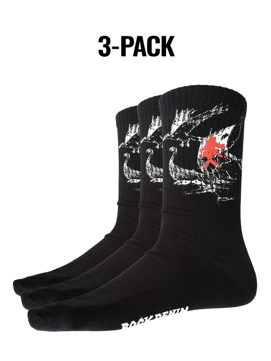 3-pak bambusstrømper i superkvalitet med nordisk vikingemotiv!