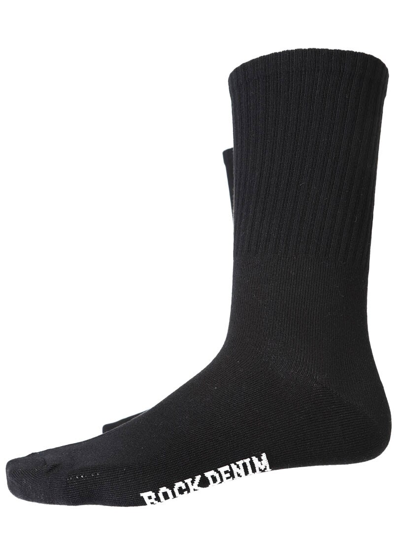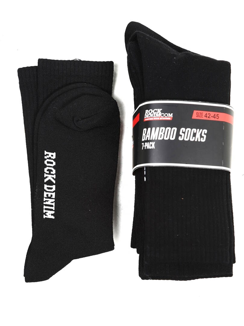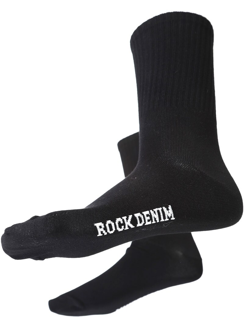 Strømperne er lavet i en lækker bambuskvalitet, som har gode egenskaber som temperaturregulering, ekstra åndbarhed og som svedtransporterende. Bambus føles blødere end fx bomuld. "Rockdenim" med små hvide bogstaver under foden. Bambusplanten har et naturligt forsvar mod bakterier, hvilket betyder, at den vokser uden giftige pesticider. Det er bæredygtigt og noget vi er stolte af at tilbyde!