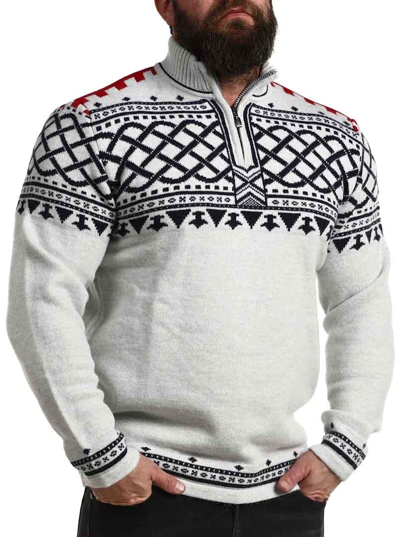 En robust og stilren trøje inspireret af nordisk tradition og vikingeånd! Strikket i en eksklusiv garnblanding, der giver både varme og komfort hele dagen. Trøjen har en klassisk krave med lynlås ved halsåbningen. Perfekt til at justere stil og varme efter behov.