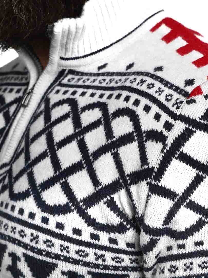 En robust og stilren trøje inspireret af nordisk tradition og vikingeånd! Strikket i en eksklusiv garnblanding, der giver både varme og komfort hele dagen. Trøjen har en klassisk krave med lynlås ved halsåbningen. Perfekt til at justere stil og varme efter behov.