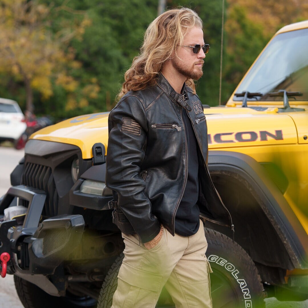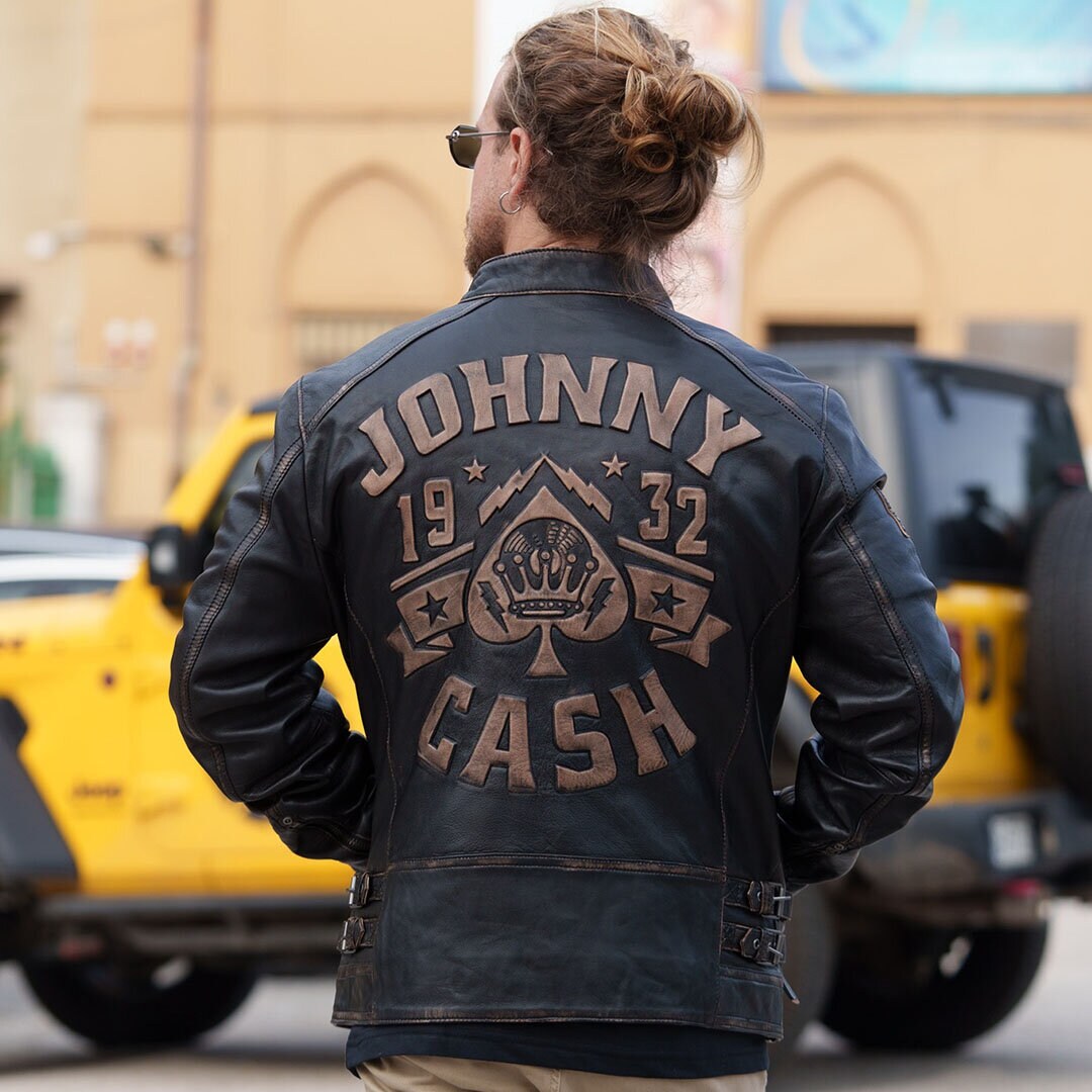 - Overdel: Læderjakken er dedikeret til Johnny Cash og har en fantastisk tekstur, der komplementeres af den minimalistiske sorte RD Basic Tee.